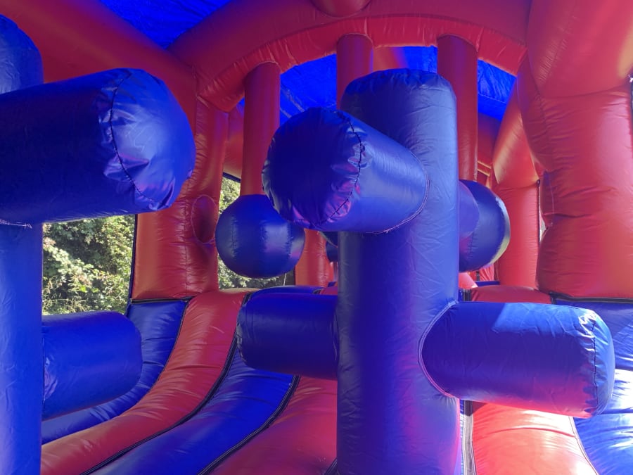 If your looking for the ultimate in assault course hire in Essex then this inflatable really is the one for you, Measuring a whopping 70 feet in length with dive through's , tank traps ,swing balls, ,run over humps, bish bash posts and an 8 ft high slide to finish the whole experience this inflatable assault course is the real deal. suitable for both children and adults and fully rain covered there is nothing to stop all ages having fun in any weather conditions. Made in a high gloss material and covered in neutral party themed artwork this really will be the main event and show case attraction for any party . Feel like this may be not big enough or need something smaller then we have assault course to suit all garden sizes from just 28ft in length right up to 240ft just see our full range on our assault courses to hire page . Want to add something else to your booking then we have a wide range of adult bouncy castles to hire in Chelmsford or some fantastic high energy games like gladiator duels , pillow wars and large event slides all of which can be seen on our activity inflatables page . Want your party to go on in to the night or even for a few days then we over both overnight hires and discounted rates for multi day hires all of which can be done on your booking form . We currently have one of the largest selections of assault courses to hire in Essex and also offer a full U.K. delivery service see our areas covered page or for out of area deliveries please call one of the team on 07895022736 for a quotation .