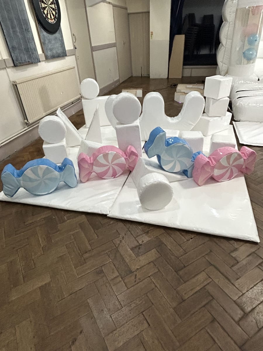 Looking for luxury party ideas in Essex for both a boy and a girl then we have this amazing white soft play and ball pool to hire in Chelmsford and all surrounding areas , featuring 18 bits of gloss white soft play and a colour matching matted safety area we also add 4 large candy sweet shapes in pastel blue and pink couple that with a white ball pool with colour matching balls you really have got the ultimate party set up for your young guests at your birthday party or christening event .