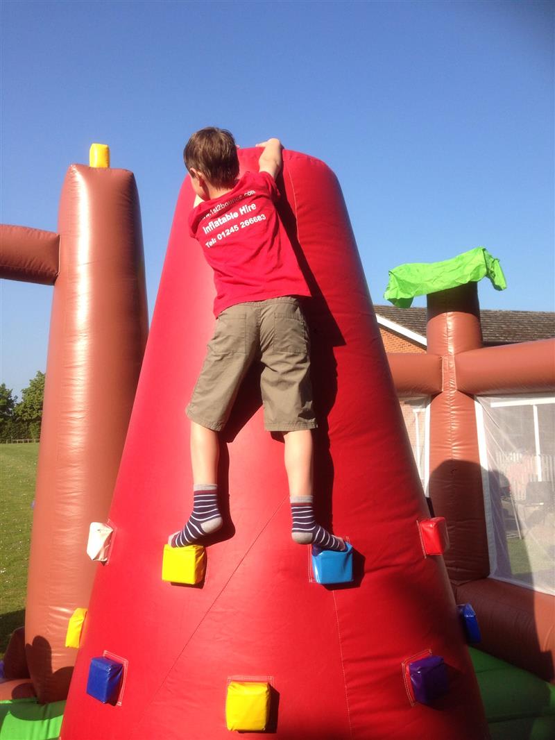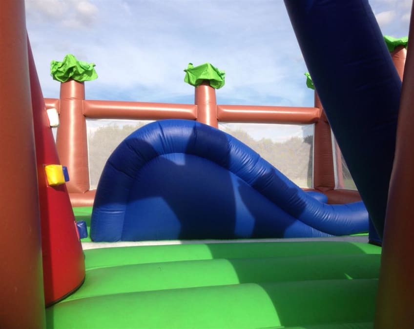 This inflatable is one of our flagship bouncy castles and is the only one of its kind in Essex,Featuring a climbing wall,a slide,built in rocker units and a large dinosaur head peering over the top this inflatable really is a stand out from the crowd castle.With 360' netting around the inflatable your children can have hours of fun with mums and dads having perfect sight of the inside of the castle.measuring a massive 25ft wide and 20 ft deep this inflatable caters for high volumes of children and is very popular with our school inflatable fundays ,want something else for the kids then we also supply