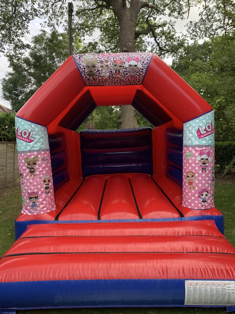 Following on from the massively popular toy for girls we have the very latest bouncy castle in the theme of LOL Surprise , featuring some of the pictures of the hugely popular doll on this stunning high gloss bouncy castle it's a perfect addition to any young girls party . This bouncy castle has a built in sun / rain cover so not even the weather can spoil your child's LOL surprise party . Bookings can be made online with our online diary and booking system 24 hours a day 7 days a week it really is that easy to make your party or event one to remember will very little stress . Our company has been in the entertainments industry for over 10 years and are always on hand to answer any questions or help you make the right choice for your event just call one of the team on 07895022736 or CLICK HERE to email the office . We also have a massive range of soft play to hire , adult bouncy castles , slides and many party extras to hire . Should you require multiple items why not CLICK HERE to view our packages page where you can find many great money saving offers , our delivery area covers not only Chelmsford but we also do bouncy castle hire in Brentwood , Billericay , Wickford , colchester , South Woodham Ferrers and all surrounding areas just CLICK HERE to check your area .