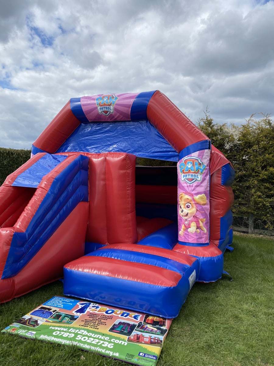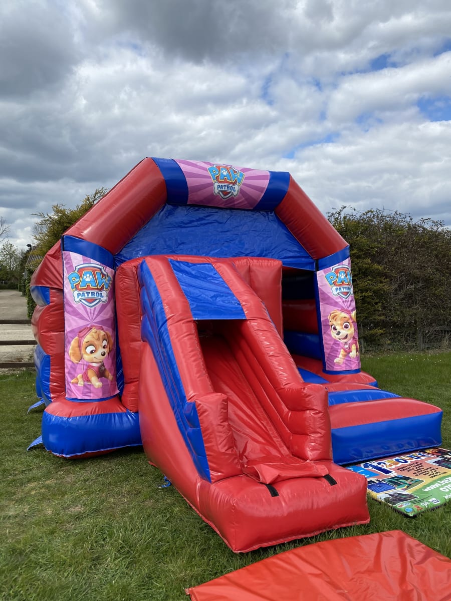 Brand new to our hire fleet is the amazing girls paw patrol slide combo bouncy castle , Featuring one of the hit shows main stars , Skye the adorable flying cockapoo this really is a beautiful inflatable with stunning artwork on each side and a high gloss castle this really is a stand out hire item and with a built in sun and rain cover the party will never stop with this bouncy castle . We also have a wide range of