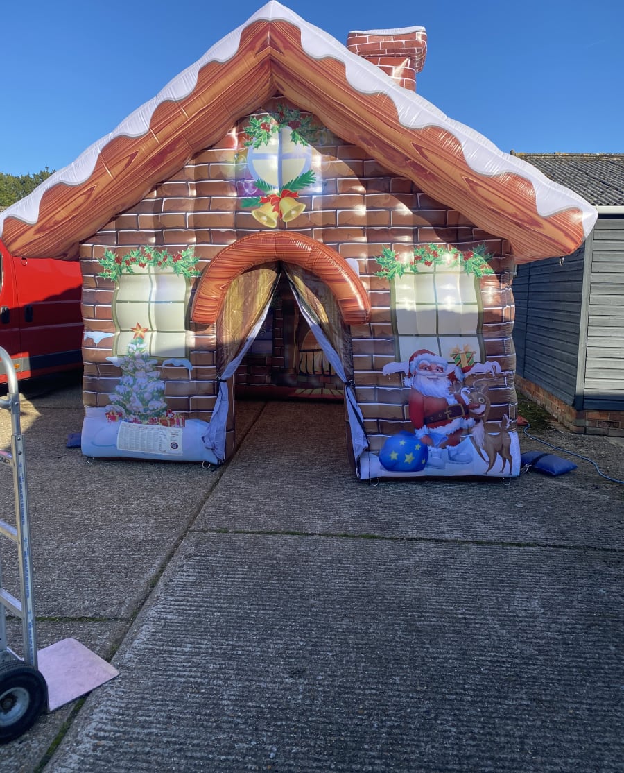 Looking to make your Christmas party or event one to remember for the little ones then we have the perfect solution with our amazing inflatable Christmas Grotto we have on offer to hire , featuring stunning artwork on both the outside and inside and in the shape of a real life log cabin this really will make any child's santa visit one to remember . Our inflatable Christmas grotto's we hire are a fantastic way of fund raising for schools or clubs just add a santa to sit inside and make the dream of visiting Father Christmas come true . We also have a wide range of other Christmas themed inflatables and games from Christmas bouncy castles , side show games and even inflatable snow globes to hire , just CLICK HERE to see our full range of products . Booking your inflatable Christmas grotto has never been so easy just select your date to check availability and you can book online 24 hrs a day 7 days a week if you need any help or advice we have an FAQs page or just give one of our team a call on 07895022736 or CLICK HERE to email our office , our vans cover most of Essex every day to check your area just visit our areas covered page .