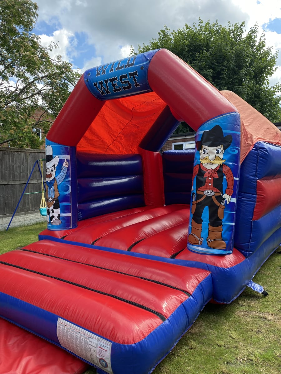 Looking to bring the magic of the American frontier to your very own event then we have the perfect answer with our Wild West bouncy castle to hire in Chelmsford and surrounding areas , Jump off of your horse and spread the word there's a new kid in town as you kick open the saloon doors and make your entrance on to our fantastic wild west bouncy castle . Made in a high gloss material and with a built in sun / rain cover and with stunning cowboy artwork across the front this inflatable really will set the tone for any wild west party ideas in Essex for all your little cowboys and cowgirls . Want the party to go on in to the night or even for a few days then we offer both an overnight hire service and discounted rates for multi day hires both of which can be added to your booking form online and if you wanted something more than just a normal bouncy castle we also have both a front slide and side slide wild west bouncy castle on our hire fleet which can be found on our slide combo hire page . Want to add more wild west hire items to your party then be sure to check out our fantastic cactus lasso/hoopla game , giant horse hoppers and the ever popular wild west shootout game all of which can be on our party extras page . Want something for the older more adventurous guests then why not have a look at our giant inflatable slides and assault courses to hire in Essex pages and for the younger generation we also supply soft play hire in Chelmsford . Want to book more than one hire item then we have some great money saving ideas on our packages page or just CLICK HERE to email our office and we can custom build you a package to suit both your budget and hire requirements . Although we are a Chelmsford based bouncy castle hire company our vans do cover most towns and villages in Essex just CLICK HERE to see our areas covered page or call our office on 07895022736 for further afield delivery charges . Booking your wild west bouncy castle hire in Essex has never been so easy using our online diary and booking system just select your hire items and dates to check availability then if they are free just hit book now and fill in all of your event hire details our system will then book you in and send an email confirmation while you just sit back and sip on your moonshine and wait for the wild west party team to make your event the talk of the town .