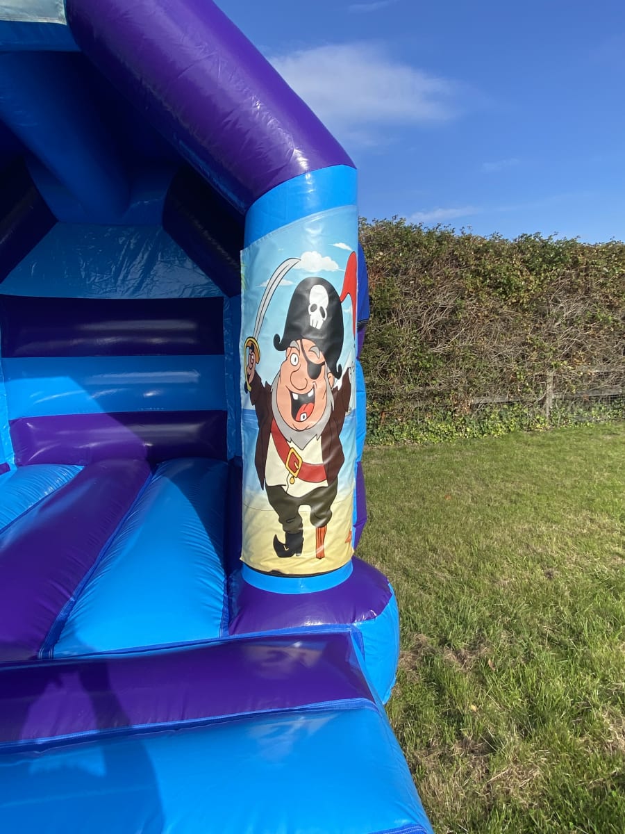 Cast of the ropes , raise the sails and climb aboard our fantastic pirate side slide bouncy castle we have to hire , made in a high gloss material and with stunning pirate themed artwork this really is the talk of the seven sea's and with the added twist of a slide coming out from the side your young pirate fans will be kept entertained all day long . Worried about this castle being to wide for your garden then not a problem as we also have several front slide pirate bouncy castles available to hire as well as assault courses also in the pirate theme . Looking for something for the younger shipmates then why not book one of our soft play hire sets or for the older guests we also offer a wide range of adult bouncy castle hire in Chelmsford and all surrounding areas . If you are looking for other party themed inflatables why not check out our full range of dinosaur inflatables , princess , super hero and we also have a large fleet of sports themed bouncy castles and high energy games such as gladiator duels and sumo suits . Many of our clients look to book more than one inflatable so with this in mind we have a dedicated packages page with some great money saving ideas as well as an extras page for that special finishing touch to any party or event , If you would like us to custom build you a package just CLICK HERE to email your details to our office and we will do our best to make a bundle to suit both your budget and hire needs . Although we are a Chelmsford based bouncy castle hire company our vans do cover many other areas in and around Essex just CLICK HERE to see if we cover your area or call one of the team on 07895022736 and we can give you an quotation for delivery both out of area and full U.K. as well . Booking your pirate bouncy castle has never been so easy using our online diary and booking system just select your items and date to check availability and if they are free just hit book now and fill in all your details and then leave the rest to us it really is that easy and stress free when using our company for all your party needs .