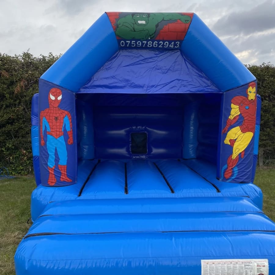 There is not many children who don't dream of one day becoming a real life Super Hero well we can make those dreams come true with our stunning disco ready Marvel bouncy castle we have to hire in Chelmsford and all surrounding areas made in a high gloss material with 3 of the biggest super hero stars Spiderman The Hulk and Iron man across the front and with a built in ran / sun cover this really is the ultimate super hero experience and with the option of adding a disco light and blue tooth speaker your little heros will be kept entertained all day long or if you wish the party to go on in to the night or even for a few days then we offer both an overnight hire service and discounted rates for multi day bookings both of which you can do online with your booking form . Want something for the little Hero's then why not have a look at some of our soft play hire sets all available to hire in Chelmsford and for the older guests then we have a huge selection of inflatable slides and assault courses we hire all over Essex . Many clients ask if they can book more than one inflatable and so with this in mind we have now added a dedicated money saving packages page or just CLICK HERE to email our office and we can custom build you a package to fit your budget and hire needs , Want some smaller party ideas to add the finishing touched to your super hero party then we have some great low value hire items on our party extras page such as giant space hoppers and garden games you can add on to your booking form . If super heros is not your thing then don't worry we hold a very wide range of other party themes including pirate bouncy castles to hire , Sports themed bouncy castles , Fun Fair inflatables and even Dinosaur bouncy castles and assault courses to hire all over Essex . Although we are a Chelmsford based bouncy castle hire company our vans do cover a wide area of Essex delivering bouncy castles and soft pay to Billericay and Brentwood to name a few locations to see our full delivery areas just CLICK HERE or call one of the team on 07895022736 for further afield delivery charges . Booking your Super Hero bouncy castle hire in Chelmsford has never been so easy using our online diary and booking system just select your date and hire items to check if they are available then if they are just hit book now and fill in all of your party details it really is that easy and stress free to make your Super Hero party ideas in Essex the massive success your hero's deserve .