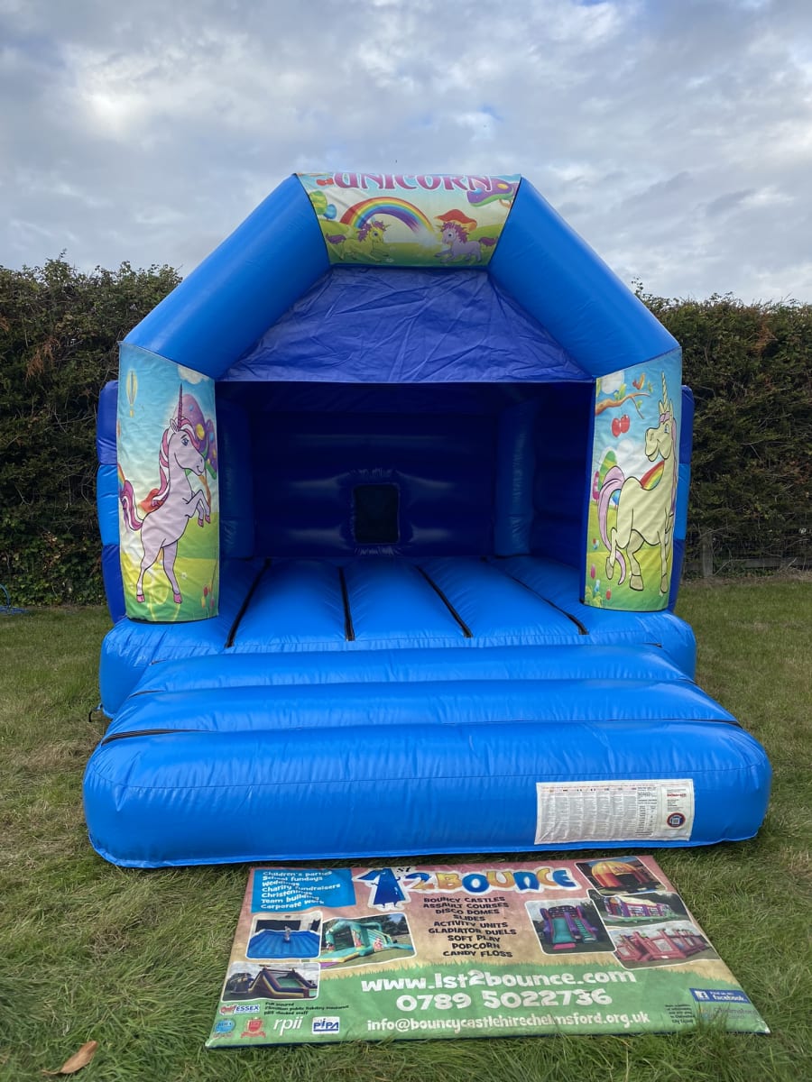 Looking for Unicorn party ideas in Chelmsford then we have this beautiful Disco ready unicorn bouncy castle available to hire made in a high gloss material and with a built in weather roof this inflatable really will bring the magic of these mythical creatures to your very own garden or party venue and with the added option of adding both a Disco light and blue tooth speaker to this bouncy castle your little ones can dance and bounce the whole day away surrounded by these adorable unicorns that are printed all over the front of this inflatable . Want your party to go on in to the night or even for a few days then we do offer both an overnight hire service and discounts for multi day hires both of which can be added to your online booking form . Want something for the younger guests attending your event then we have a wide range of