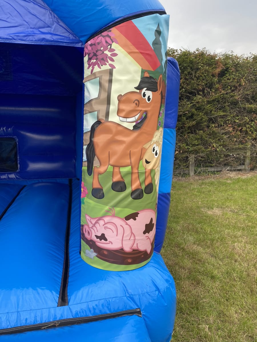 New in to our hire fleet is our Farm Yard bouncy castle to hire in Chelmsford , so rather then packing up the car and driving to your local farm then we can bring the whole farm experience to your very own party or event . Made in a high gloss material and with brightly coloured artwork featuring every child's favourite farm animals this really will make your young farmers party an extra special day that even old Mcdonald would love to attend , This bouncy castle also comes with the added option of having disco lights and a blue tooth speaker added so your little ones can bounce and dance the day away or if you would like to party on in to the night or even all weekend then we can offer both overnight hires and discounts for multi day hires both of which you can select on your booking form . Want something for the younger guests then we have a wide range of soft play to hire in Chelmsford and for the older farmers then why not check out our adult bouncy castle hire page , inflatable slide hire and assault courses that we hire all over Essex . Many of our clients often ask if they can book more than one hire item so with this in mind we created a money saving package page with some great offers on multiple products or just CLICK HERE to email our office and we can custom build you a package to suit your budget and hire needs . Being the largest and most established Chelmsford based bouncy castle hire is something we are very proud of and having worked directly for the city council for over 12 years to date you can rest assured your party is in very safe and experienced hands , our vans cover most of Essex everyday delivering bouncy castle hires in Billericay , Brentwood , Maldon and Wickford to name just a few areas to see our full delivery area just CLICK HERE or call one of the team on 07895022736 for an out of area quotation . Booking your Farm animals bouncy castle hire in Essex has never been so easy using our online diary and booking system just select your products and date to check availability then if they are free click book now and fill in all of your party details it really is that stress free to make your farm yard party ideas in Chelmsford become reality when using 1st 2 bounce for your party or event .