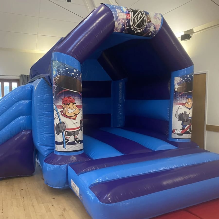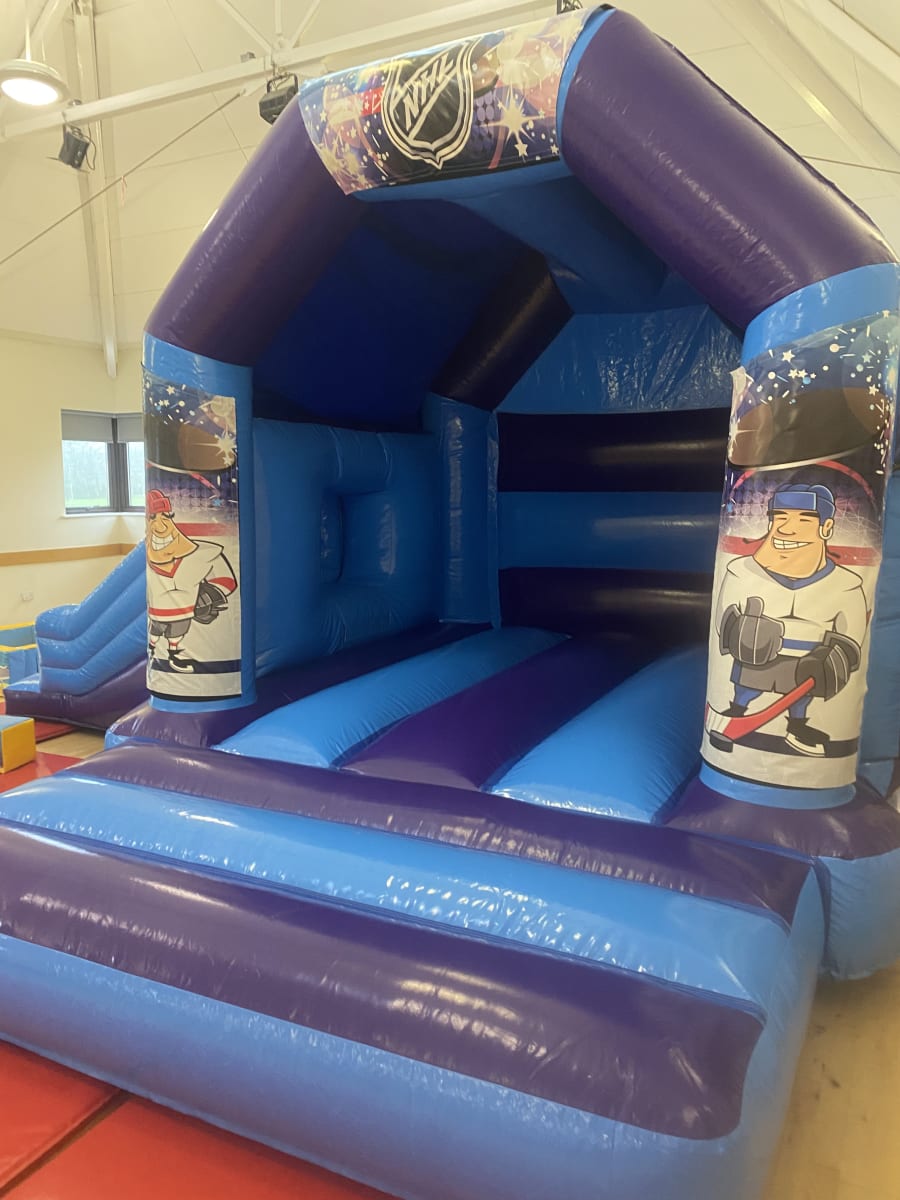 Lace up your skates and tape up your stick and get ready for the fastest team sport on earth to come to your party or event with our fantastic ice hockey themed bouncy castle to hire in Chelmsford and all surrounding areas . Made in a high gloss material and with stunning 3D artwork this really will have your guests hit the ice and shoot the puck in to the back of the net .Want something for the younger guests then we offer a wide range of soft play hire in Essex and for the bigger more adventurous guests why not have a look at our wide range of adult bouncy castle hire , inflatable slides and even assault course hire in Chelmsford and beyond . Many of our clients look to book more than one hire item so we have a dedicated packages page with some fantastic money saving offers or just CLICK HERE to email our office and we can custom build you a package to suit your budget . We are very proud to be the largest and most established bouncy castle hire company in Chelmsford but our vans cover a very wide area across Essex including bouncy castle hire in Brentwood and Billericay , Maldon , Wickford and South Woodham Ferris you can check we cover your area by CLICKING HERE or call one of the team on 07895022736 for out of area including full U.K. delivery service , Booking your inflatable hire has never been so easy using our online diary and booking system just select your hire items and date to check availability then if they are free just hit book now and fill in all your details it really is that easy and stress free to bring the magic of the ice hockey experience to your party or event when using our Chelmsford bouncy castle hire company .