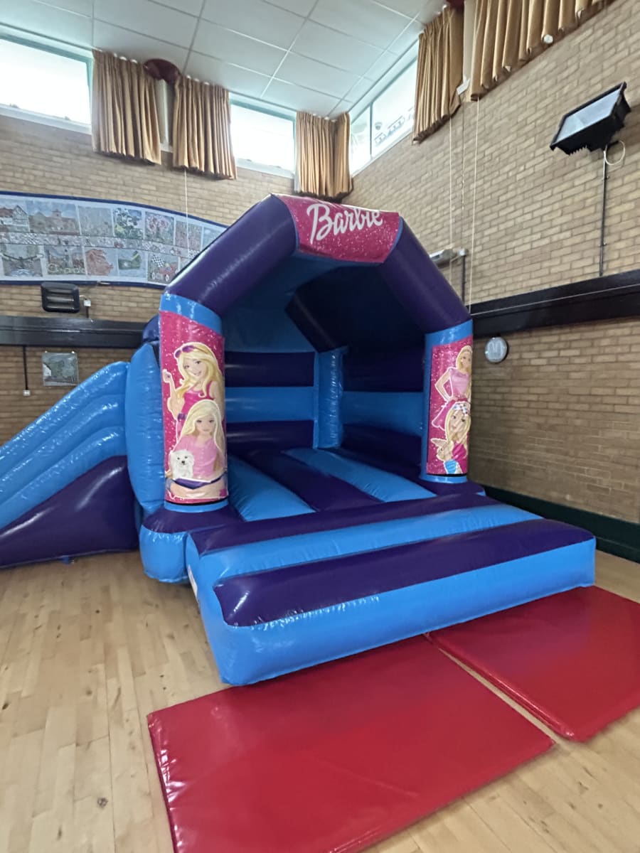 For so many millions of little girls their best friend has been Barbie the worlds most famous children's doll and why not invite her to your very own event with our amazing Barbie bouncy castle available to hire in Chelmsford Essex , Made in a stunning high gloss material with a built in rain cover and for an added twist a slide coming out from the side all finished off with bright and vibrant artwork of Barbie herself this really will have your children bouncing and sliding all day long with their very special friends . Want the party to go on in to the night or even for a few days then we offer both an overnight hire service and discounted rates for multi day hires both of which you can add to your online booking form , Want something for the younger guests then we have a wide range of