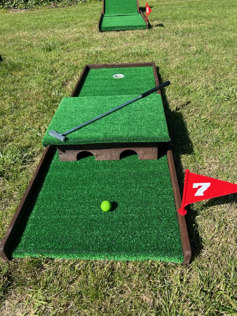 Brand new on to our hire fleet is our mobile 9 hole crazy golf set to hire in Essex , what better way to enjoy your event and create a fun atmosphere than with one of our mobile golf hire sets featuring 9 progressively harder hole have you got what it takes to become the next Tiger Wood's as you test your golf skills , this set is totally mobile and can be laided out in a smaller back garden , indoors in the office which is perfect for team building day's or even at wedding venues to ensure your guests have fantastic fun at your big day . We supply both adult and children's sized putters and various coloured balls all you need to do is navigate the challenging holes and score the lowest to win the game and become the champion of your event . Looking for other Team building hire ideas then we have some fantastic products such as sumo suits to hire , Gladiator duels , Basketball shootouts and even Electronic whack a mole games all of which can be found on our corporate entertainment page or our activity inflatables page . Looking to hire more than one item then we have some great money saving deals on our packages page or just CLICK HERE to email our office and we can custom build you a package to suit both your budget and hire needs . Our vans cover most towns and villages in Essex just see our areas covered page for more details and for locations not listed please call 07895022736 and we will give you a quotation for further afield deliveries .