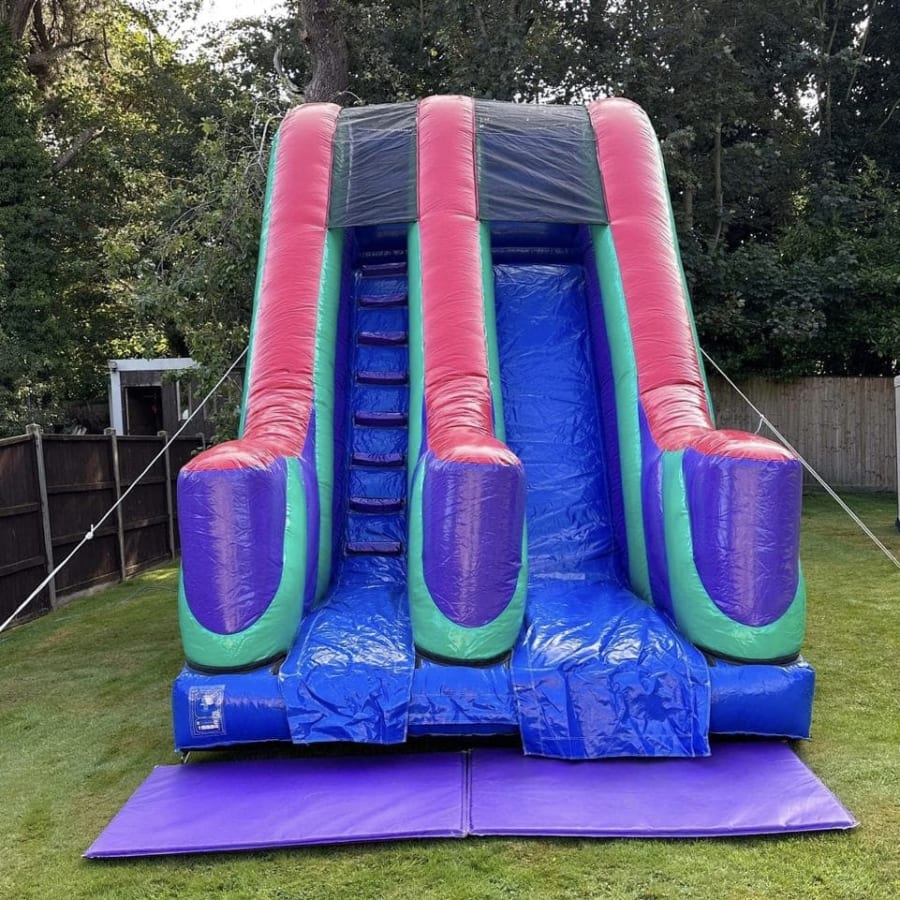 Looking for Inflatable Slides to hire in Essex then we have this amazing 10 ft platform slide brand new in to our hire fleet this year available , made in a stunning high gloss material and with a netted safety roof cover built in you and your guests will have hours of endless fun climbing the steps to reach the summit then slide down to the bottom at an exhilarating speed then if you have the stamina you can go again and again till your hearts content . Want the party to go on in to the night or even for a few days then we offer both an overnight hire service and discounted rates for multi day hires both of which can be selected on your online booking form . Looking to add something else to your event then why not have a look at our massive range of