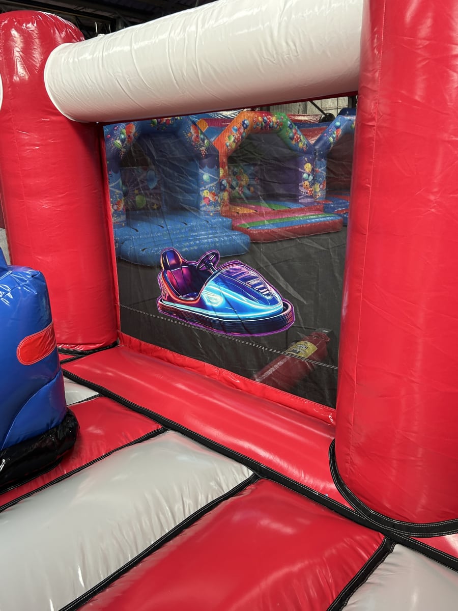 Looking for circus and fun fair party ideas in Essex then we have the perfect answer with our fantastic fun fair activity bouncy castle available to hire in Chelmsford and surrounding areas , designed and custom made for our company we are the 1st and currently only bouncy castle hire company in the whole of the U.K. to have this inflatable available to hire . Featuring a large bounce area and 2 stunning bumper cars within the netted bounce zone and with the added twist of having a built in slide we can guarantee your party guests will have hours of fun on this fun fair themed inflatable we have to hire . Want the party to go on into the night or even all weekend then we offer both an overnight hire option and discounted rates for multi day hires both of which can be added to your online booking form . We as a company are very proud to be able to offer the largest range of