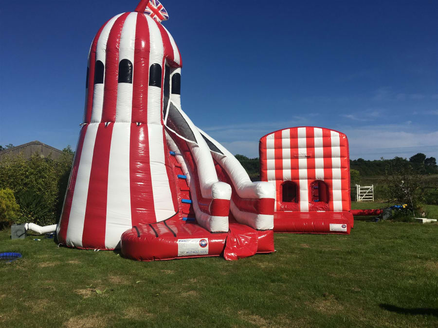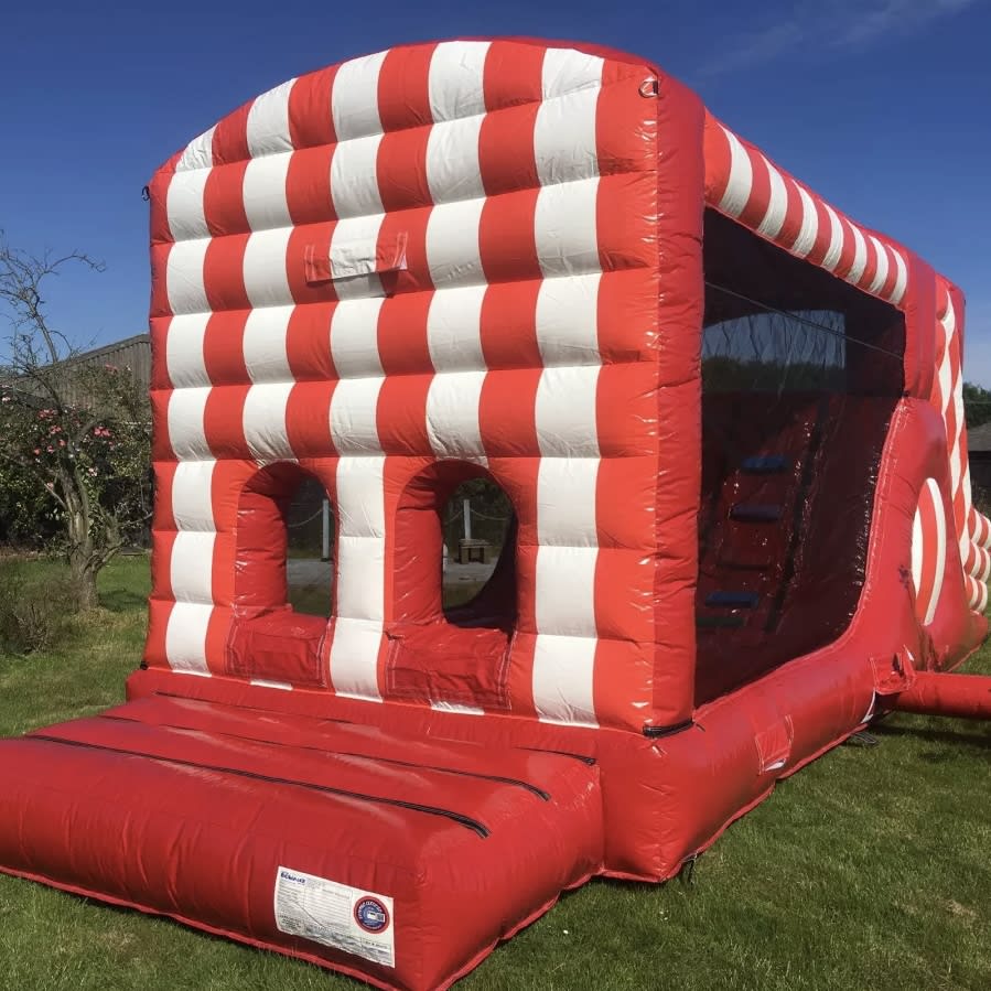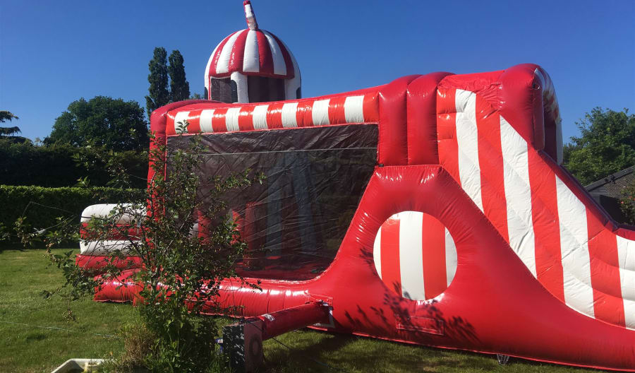 New to our fleet this year is our custom made and totally unique mini assault course perfect for the smaller length gardens, with stunning classic red and white fair ground stripes this inflatable will really put the FUN into your fun run. step onto the front enter the massive holed entrance, negotiate the bish bash units , climb the steps and then wizz down the 8ft platform slide and then if you still have the energy you can start all over again! . want to really make a wow factor at your party or event then why not combine this with our fantastic fairground package the only set up of its kind currently in the UK. If you want the full package we also have side show games like feed the clown, ball in the bucket and even an inflatable hoopla all in matching retro red and white stripes fantastic for large events or corporate hire.Need staff to run your event ? yes we can supply fully trained RPII trained operators to supervise your activities. If you need any help or advice