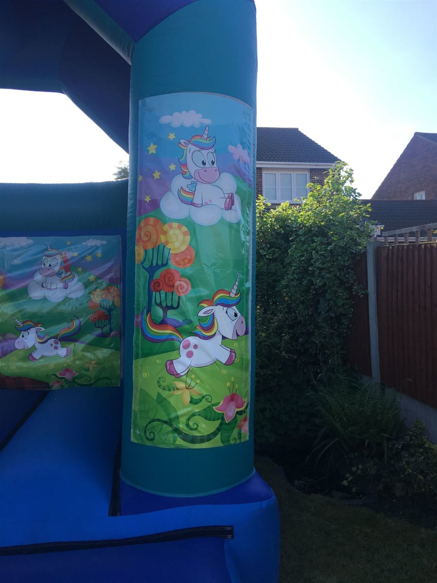New in to our fleet is our massively popular unicorn themed bouncy castle to hire, it seems kids, especially the girls are going crazy for these adorable little magical creatures called unicorns similar to a little pony only they have a magic little horn on their noses, our stunning artwork has loads of baby unicorns on it along with rainbow slides making a stunning looking castle, looking for something for the younger ones then we also do soft play and if you combine the 2 together you can find fantastic deals in our packages section