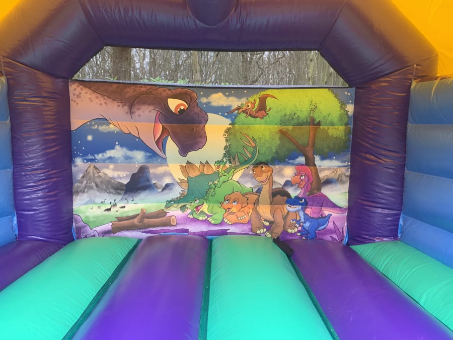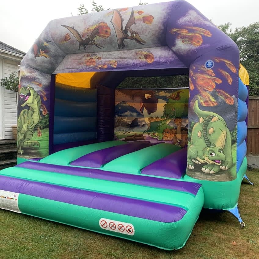 Let your children go back to the Jurassic era with our all new dinosaur bouncy castle , featuring stunning 3D effect pictures of all their favourite dinosaurs from years gone by. This bouncy castle has a built in roof for protection against both the rain and sun for your little ones so not even the weather can stop your party, this dinosaur bouncy castle is custom made in the UK , manufactured to our specifications so truly is a one of a kind inflatable. We also hire soft play , fun foods and giant garden games such as giant Jenga , giant connect 4 and even giant Velcro darts for that extra special party. Booking is simple simply select your date on our online diary and if this bouncy castle is available you can even book online 24/7. Need some help or advice then you can CLICK HERE to contact us via email or call one of our dedicated team on 07895022736 and we would be only to happy to help.