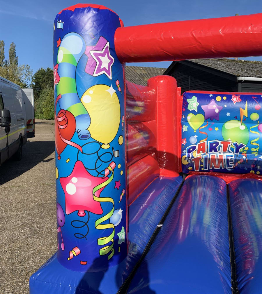 This castle is perfect for indoor use in halls with restricted height issues as well as garden hire , featuring stunning unisex artwork of balloons and streamers it’s perfect for both boys and girls . Finished in a high quality gloss material by a leading UK manufacturer like all our inflatables we only purchase high end bouncy castles to hire so our clients get the very best value for money when booking any bouncy castle with 1st2bounce inflatables. We also offer a matching ball pool with air jugglers and even matching soft play , check out our packages section for more details. If you are unsure or would like some help deciding which of our many bouncy castles to hire would most suit your needs feel free to contact one of our team via email info@bouncycastlehirechelmsford.org.uk or call us any time on 07895022736 and we would be only to happy to help.