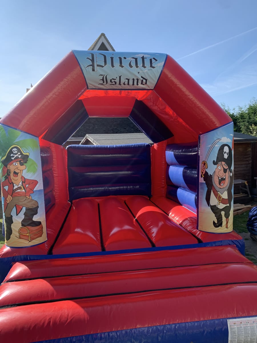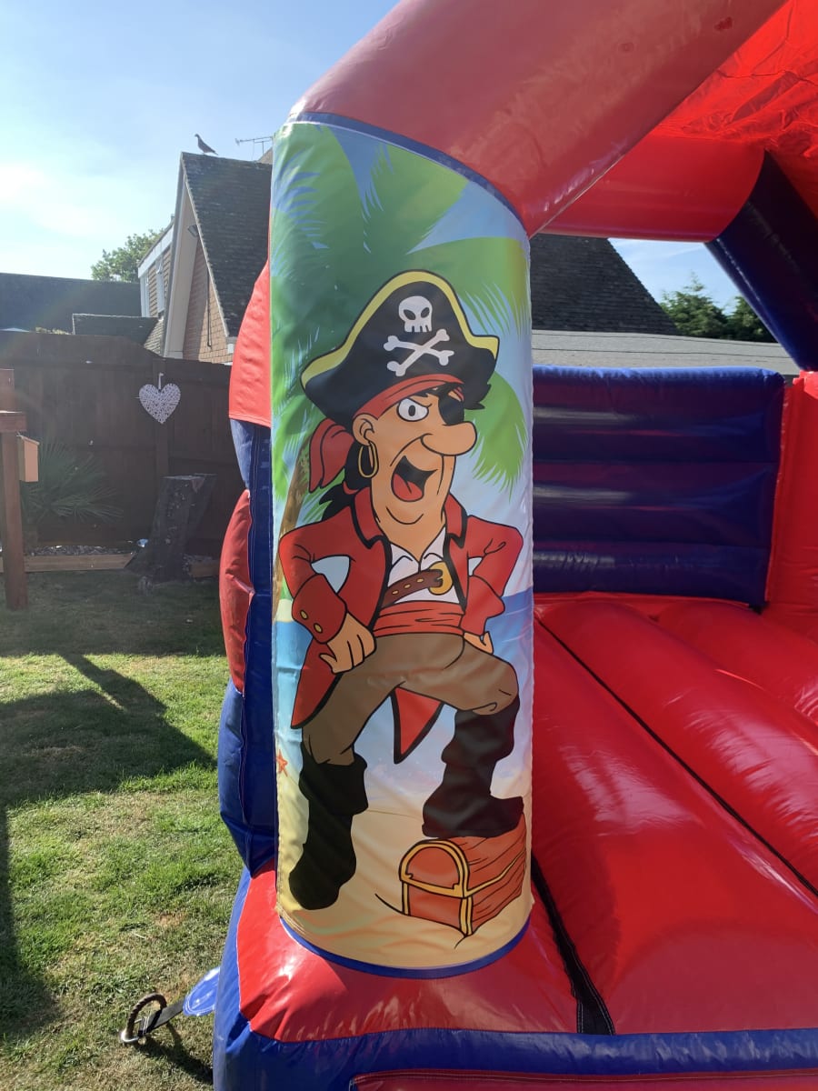 Pirate themed bouncy castles have always been a popular theme with both boys and girls a like and we have got a fantastic range of inflatables in the theme of pirates, this bouncy castle is finished in a high gloss material so is visually stunning along with the pirate artwork on both front pillars and at the top of the arch as well. this pirate bouncy castle has a built in sun and rain cover so even the sometimes unpredictable English weather wont stop you little pirates enjoying the thrills of sailing the seven seas on this inflatable. We also have pirate slide combination castles as well as 2 large pirate assault courses if you wanted to add to your booking or have space to have a larger inflatable in your garden or venue. Want something for the little pirates as well ? not a problem we also have soft play and many more extras . Booking can be made online with our online diary and booking systems or if you require further information or help and advice just drop our events team and email info@bouncycastlehirechelmsford.org.uk or call one of the team on 07895022736 and we would be only to happy to help make your pirate adventure one to remember.
