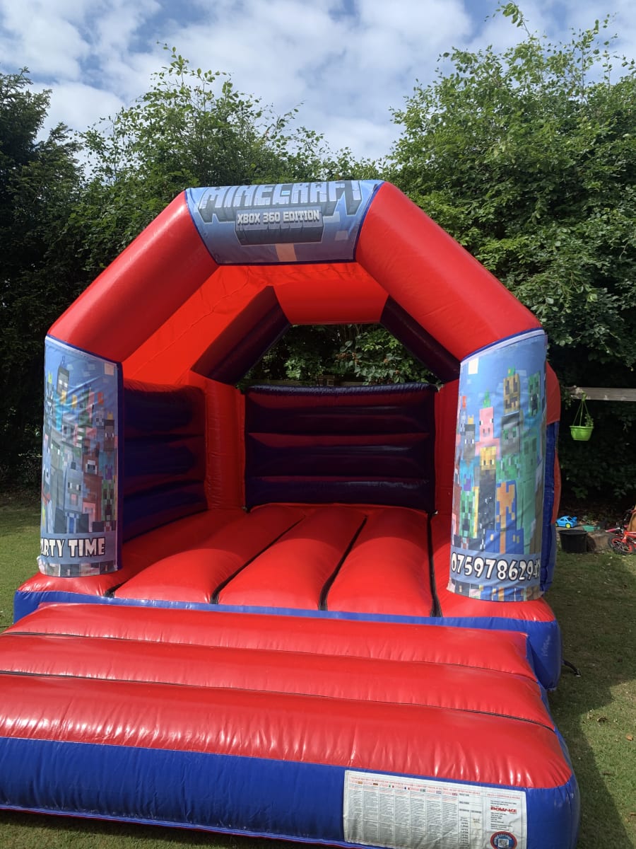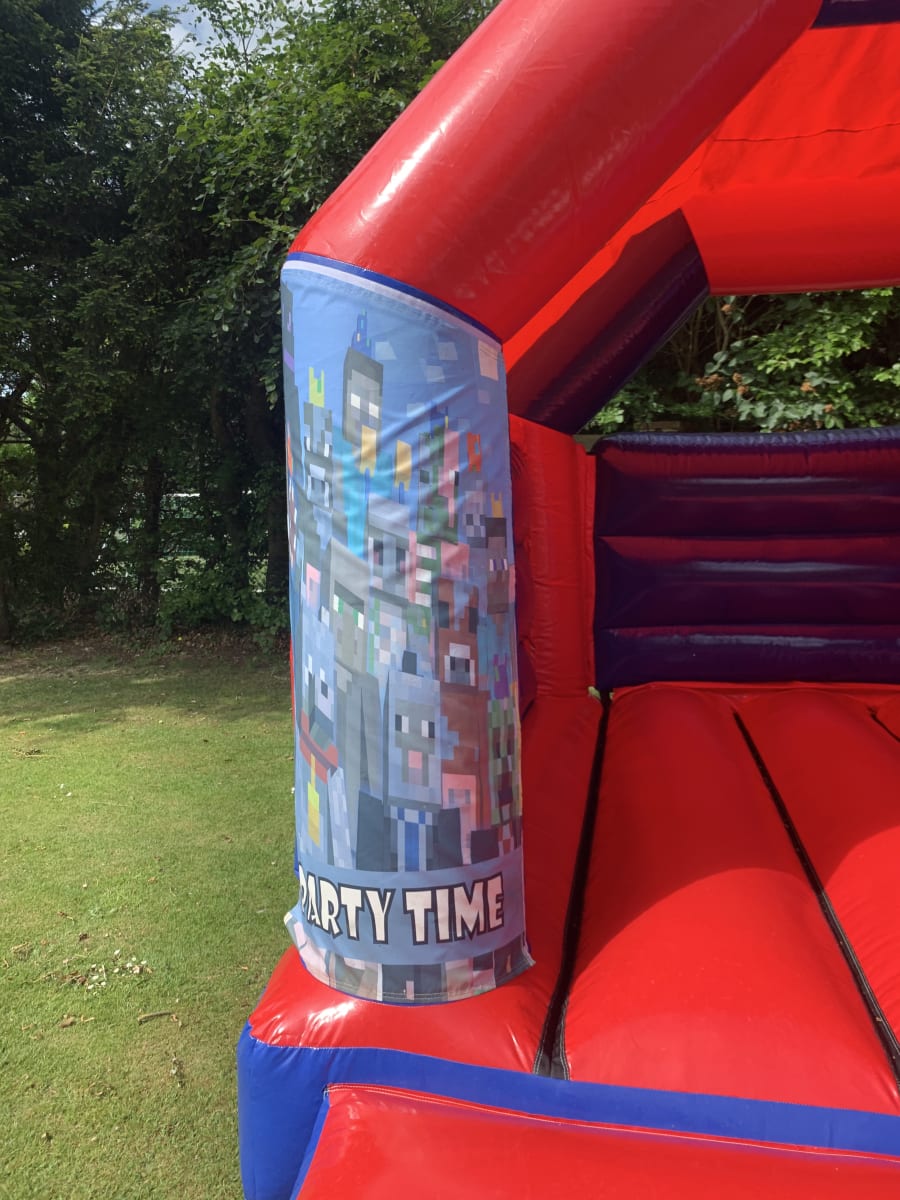 Bringing one of the most popular computer game themes to life on our fantastic minecraft bouncy castle , your children can enter the 3D building platform game and live in the virtual world that is minecraft . This castle is made in a stunning high gloss finish for a visually impressive look and with a built in sun and rain cover not even the good old English weather can stop your children enjoying their very own minecraft experience .Want something for the younger gamers then why not add a soft play set to your booking for the mini mincrafters or one of our ever popular ball pools all can be found on our extras page . We also have a wide range of package deals available on our packages page for great money saving deals while still getting the very best service from our team , our vans cover most of Essex every day just click on our delivery areas page to check or alternatively just CLICK HERE to email our office or call one of the team on 07895022736 and we would be only to happy to help or advise you on what products would best suit your hire needs .