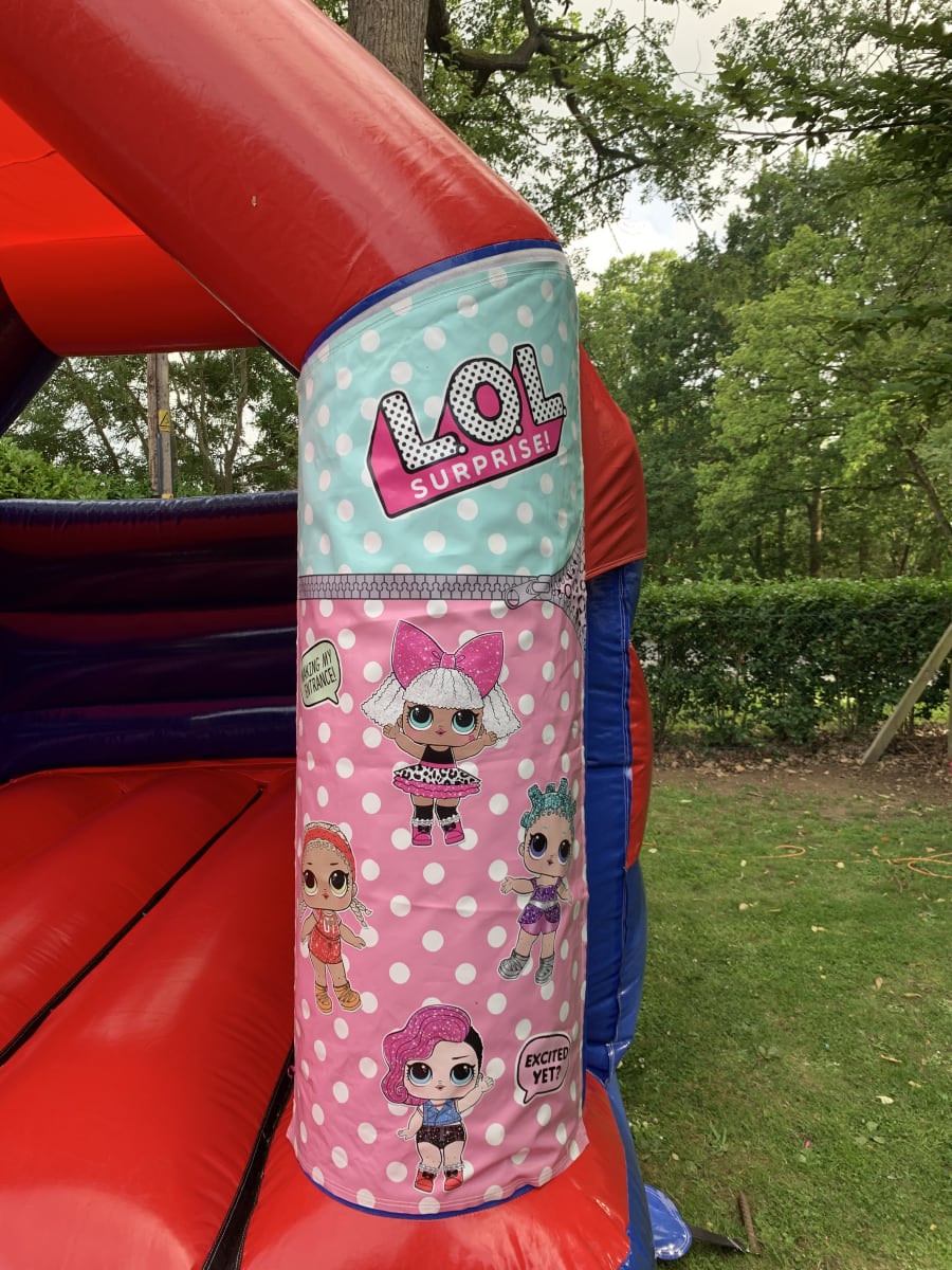 Following on from the massively popular toy for girls we have the very latest bouncy castle in the theme of LOL Surprise , featuring some of the pictures of the hugely popular doll on this stunning high gloss bouncy castle it's a perfect addition to any young girls party . This bouncy castle has a built in sun / rain cover so not even the weather can spoil your child's LOL surprise party . Bookings can be made online with our online diary and booking system 24 hours a day 7 days a week it really is that easy to make your party or event one to remember will very little stress . Our company has been in the entertainments industry for over 10 years and are always on hand to answer any questions or help you make the right choice for your event just call one of the team on 07895022736 or CLICK HERE to email the office . We also have a massive range of soft play to hire , adult bouncy castles , slides and many party extras to hire . Should you require multiple items why not CLICK HERE to view our packages page where you can find many great money saving offers , our delivery area covers not only Chelmsford but we also do bouncy castle hire in Brentwood , Billericay , Wickford , colchester , South Woodham Ferrers and all surrounding areas just CLICK HERE to check your area .