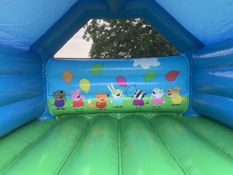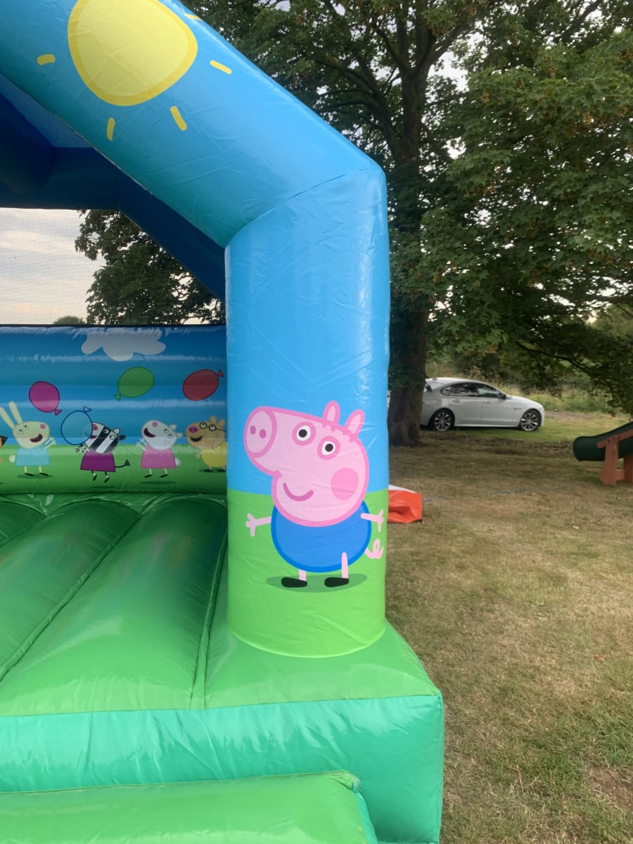 1st2 bounce are very pleased to be one of only a few bouncy castle hire companies in not only Essex but the whole of the UK to offer this very special fully licensed Peppa Pig bouncy castle , without a doubt Peppa Pig has long been one of the most popular themed bouncy castles on the market and this really is the best of the best in terms of build quality and stunning 3 D artwork finished in a high gloss material this really will make your children's Peppa pig party a real stand out affair . This bouncy castle also has the added feature of a built in rain / sun cover so not even the good old English weather will stop your party or event being a massive hit . We also have a massive range of soft play to hire in Chelmsford and surrounding areas for the younger ones and for the larger kids and grown ups we have one of the most comprehensive ranges of adult bouncy castle hire , assault courses , inflatable slides and even giant garden games such as giant darts , jenga and the ever popular giant connect 4 all these items can be found on our extras page . Booking your bouncy castle has never been so easy or stress free using our online diary and booking system just select your bouncy castle , choose your date to check if its available then just hit book now and fill in all the details and that is all you need to do while our expert team of party planners deal with your booking , should you need any help or advice just CLICK HERE to email our office or call one of the team on 07895022736 and we would be only to happy to help you make the perfect choice for your party or event . Our vans deliver to most areas of Essex just CLICK HERE to check your area .