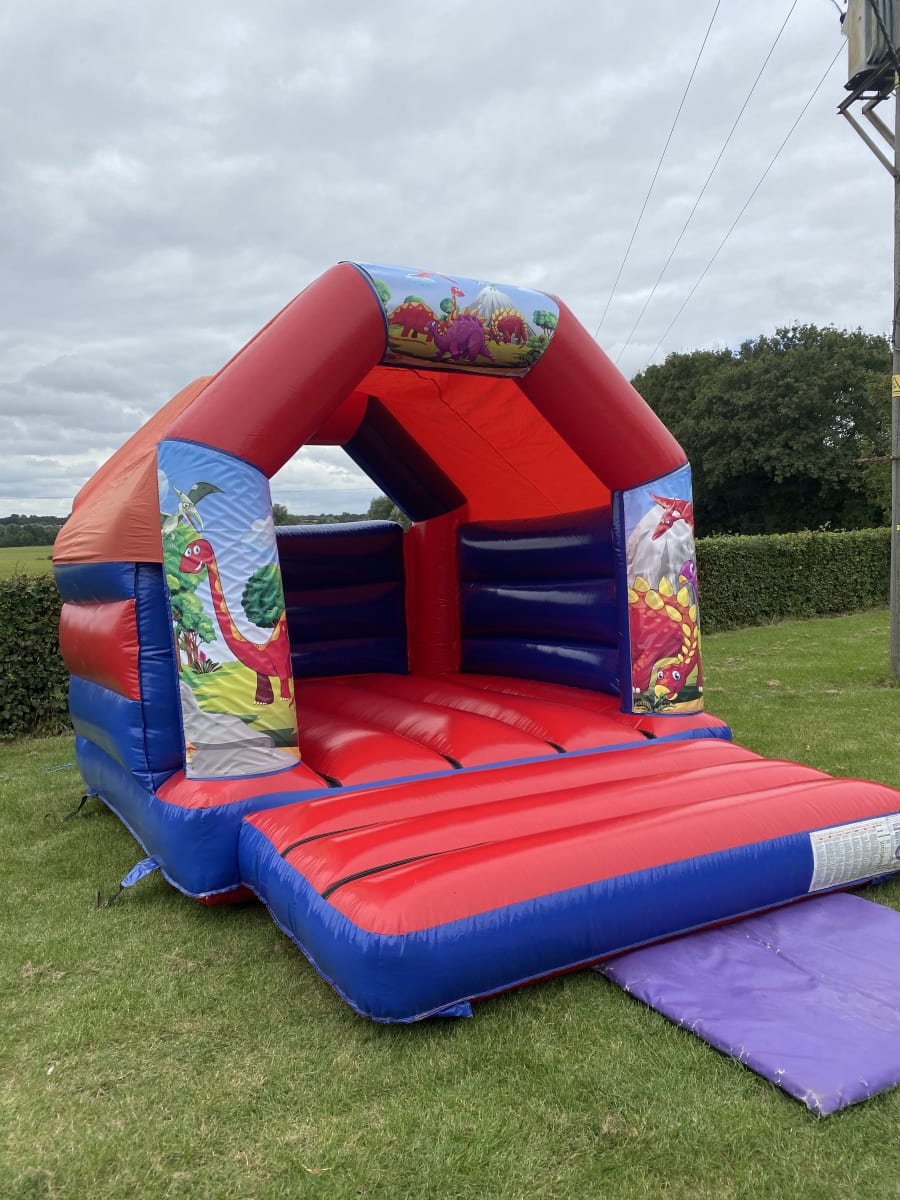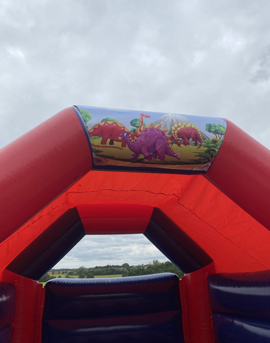 One of the current most popular themes for bouncy castles is the dinosaur range and this castle really is a perfect addition to any dinosaur party or event , made in a stunning high gloss material and with amazing artwork with all your favourite pre historic animals this really will take your children back to the jurassic era when these magnificent creatures rule the world . We not only have standard dinosaur bouncy castles to hire but have slide castles and even our giant kids kingdom just CLICK HERE to view our full range of dinosaur themed inflatables to hire . We are a chelmsford based bouncy castle hire company but our vans cover most of Essex just CLICK HERE to see our areas covered page or call one of the rangers on 07895022736 and we will be only to happy to help . We also have a wide range of inflatable sides , assault courses , high energy activity inflatables as well as soft play hire for the younger guests at your party or event . Many of our clients look to book more than one inflatable so with this in mind we have a dedicated packages page with some fantastic money saving deals or CLICK HERE to email our office and we can custom build a package to suit both your budget and party needs . want to add something else to your booking then we have a wide range of side show and giant garden games for that finishing touch , many of the questions and answers you may need can be found on our FAQ,s page and all bookings can be made 24/7 using our online diary and booking system just select your chosen items and date to check availability then hit book now and fill in your event details it really is that easy and stress free when using 1st2bounce for your party or event .