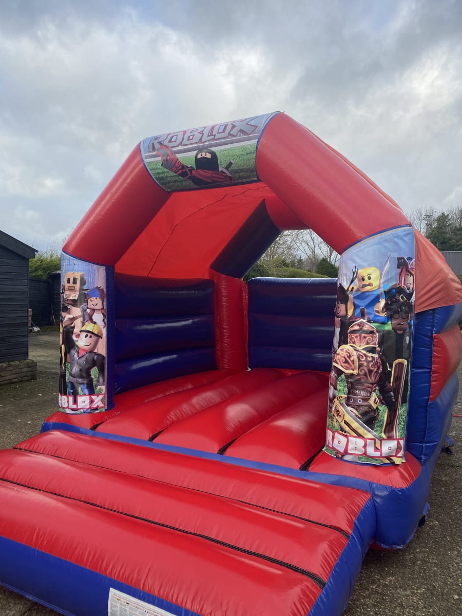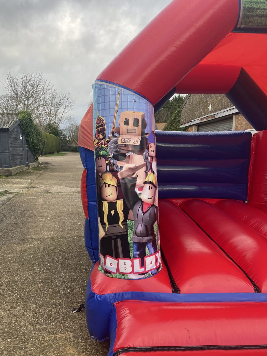New in to our fleet is this fantastic Roblox themed bouncy castle available to hire in Chelmsford and all surrounding areas , fans of this smash hit online gaming platform can now bring the magic of the game to your very own party or event , made in a high gloss material and with bright and vibrant artwork this really is a must have for any Roblox themed party and with a built in sun and rain cover your children can bounce the day away with out fear of the good old English weather stopping the fun . Want the party to go on in to the night or even for the whole weekend then that is not a problem you can select these on our online booking form , Looking for something for the younger guests then why not have a look have a look at our soft play hire in Chelmsford page , or for the older guests we offer a wide range of adult bouncy castles to hire along with large and small inflatable slide hire and even assault course hire from 28 foot long to over 240 foot long . We have many other exciting party themed bouncy castles from pirate and princess inflatables to rent , Dinosaur castles and even the largest range of fun fair themed inflatables inflatables in the U.K. Many of our clients look to book more than one hire item so with this in mind we have a dedicated packages page with some fantastic money saving ideas or if you cant find what you are looking for then just CLICK HERE to email our office and we can custom build you a package to suit both your budget and hire needs . Although we are a Chelmsford based bouncy castle hire our vans cover most of Essex from inflatable hire in Brentwwod and Billericay to soft play hire in Wickford and Maldon just CLICK HERE to see our areas covered page or call one of the team on 07895022736 for out of area and full U.K. delivery charges . Booking your Roblox bouncy castle hire in Chelmsford has never been so easy using our online diary and booking system just select your date and hire items to check availability then if they are free just hit book now and fill in all your details it really is that easy and stress free to make your Roblox party one to remember when using our company .