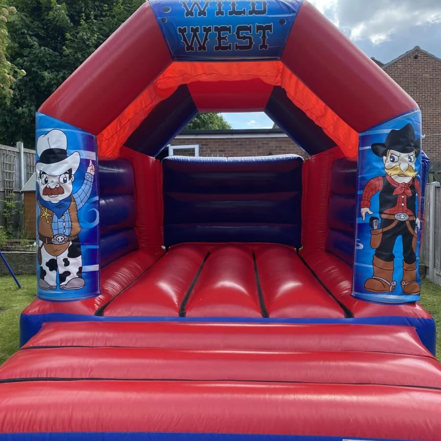 Looking to bring the magic of the American frontier to your very own event then we have the perfect answer with our Wild West bouncy castle to hire in Chelmsford and surrounding areas , Jump off of your horse and spread the word there's a new kid in town as you kick open the saloon doors and make your entrance on to our fantastic wild west bouncy castle . Made in a high gloss material and with a built in sun / rain cover and with stunning cowboy artwork across the front this inflatable really will set the tone for any wild west party ideas in Essex for all your little cowboys and cowgirls . Want the party to go on in to the night or even for a few days then we offer both an overnight hire service and discounted rates for multi day hires both of which can be added to your booking form online and if you wanted something more than just a normal bouncy castle we also have both a front slide and side slide wild west bouncy castle on our hire fleet which can be found on