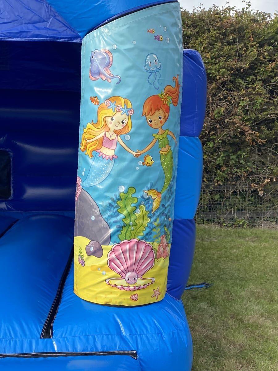Hold your breath and dive under the water to meet the magical and mysterious sea princesses otherwise know as a mermaid half women half fish these creatures of folklore can be found in oceans and seas across the world but we can also bring some of the magic to your party or event with our amazing mermaid Disco ready bouncy castle available to hire in Chelmsford and all surrounding areas , made in a high gloss material and with stunning artwork featuring these beautiful mermaids this really is the must have bouncy castle for any mermaid fan and with the added feature of having disco lights and a blue tooth speaker added for a small additional cost this really will make your little ones dreams come true for the day or if you wish we can also offer overnight hire and discounted rates for multi day hire all of which you can do on our booking forms . Looking for something for the little ones then we have matching under the sea soft play to hire as well as ball pits and even an under the sea peak board for those extra special photo moments all of which can be found on our soft play hire in Chelmsford page .Want something for the older guests then we also have a wide range of adult bouncy castle to hire in and around Essex along with inflatable slides and even large and small assault courses , want an alterative theme other than mermaid bouncy castles then why not check out our pirate and princess bouncy castle hire pages along with a wide range of dinosaur inflatables to rent in Chelmsford .Many of our clients look to book more than one hire item so with this in mind we have created a dedicated packages page with some fantastic money saving ideas or just CLICK HERE to email our office and we can custom build you a package to suit both your budget and hire needs . Although we are a Chelmsford based inflatable hire company our vans cover a wide area of Essex from bouncy castles in Brentwood and Billericay to both Wickford and Maldon just CLICK HERE to view our areas covered page or call one of the team on 07895022736 for out of area including full U.K. deliveries . Booking your mermaid bouncy castle hire has never been so easy using our online diary and booking system just select your items and date to check availability then if they are free just hit book now and fill in all your details it really is that easy and stress free to bring the mermaid party experience to your party or event when using our company .