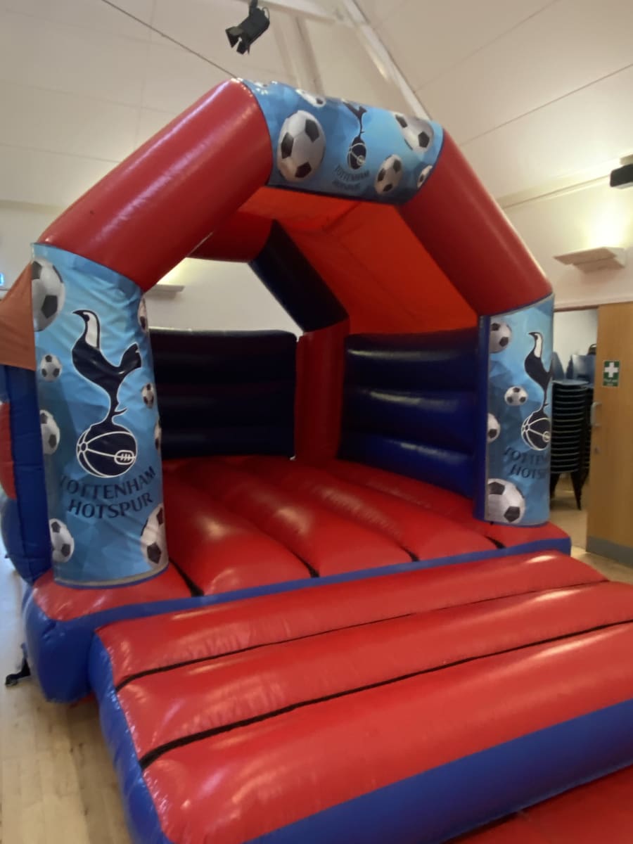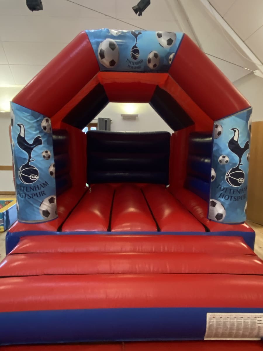 Are your Children fans of the North London giants Tottenham and would love to bring the magic of White Heart Lane to their party then we have the perfect football party idea for you with this fantastic Spurs bouncy castle available to hire in Chelmsford and all surrounding areas . With a built in rain / sun cover and made in a high gloss finished material this really is a stunning inflatable and with the famous club emblem all over the entrance is a truly worthy inflatable for any die hard Tottenham football fan who dream of being the next Harry Kane or Gareth Bale at their party or event . Want the party to go on in to extra time or even a replay the following day then that is not a problem as we offer both an overnight hire service and discounted rates for multi day hires both of which can be added to your online booking form . Want some other football party ideas in Essex then we have a great selection on our sports hire page including penalty shootouts to hire , Inflatable table football games and even fun fair side show football games . Looking for something for the younger children then we have a fantastic range of soft play to hire in Chelmsford and for the more energetic they be sure to have a look at our inflatable slides and large assault courses we hire all over Essex . Many clients look to book more than one hire item so we have now added a great money saving packages page to our website where you can find our very popular premiership party package or the ultimate football party package should you not find a bundle you like then just CLICK HERE to email our office and we can custom build you a package to suit your hire requirements within your budget . It's not just football bouncy castles we have to hire but we also can supply a wide range of other themed bouncy castles such as Pirate and Princess castles to hire along with dinosaur and Super hero inflatables all of which can be rented all over Essex . Although we are a Chelmsford based inflatable hire company our vans do cover many towns and villages across Essex supplying inflatables and soft play hire to Billericay , Brentwood , Maldon and Wickford to name a few locations to see our full delivery area just CLICK HERE or call the office on 07895022736 and we can give you a quotation for further afield deliveries . Booking your football themed bouncy castle hire in Essex has never been so easy using our online diary and booking system just select your date and hire items to check they are free then if they are just hit book now and fill in all of your party details it really is that easy and stress free to bring the game day action to your very own garden or event with our cup winning inflatable company .