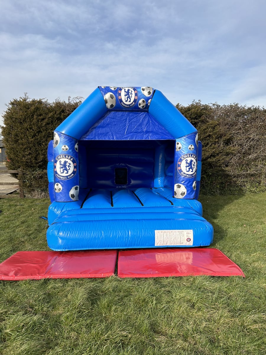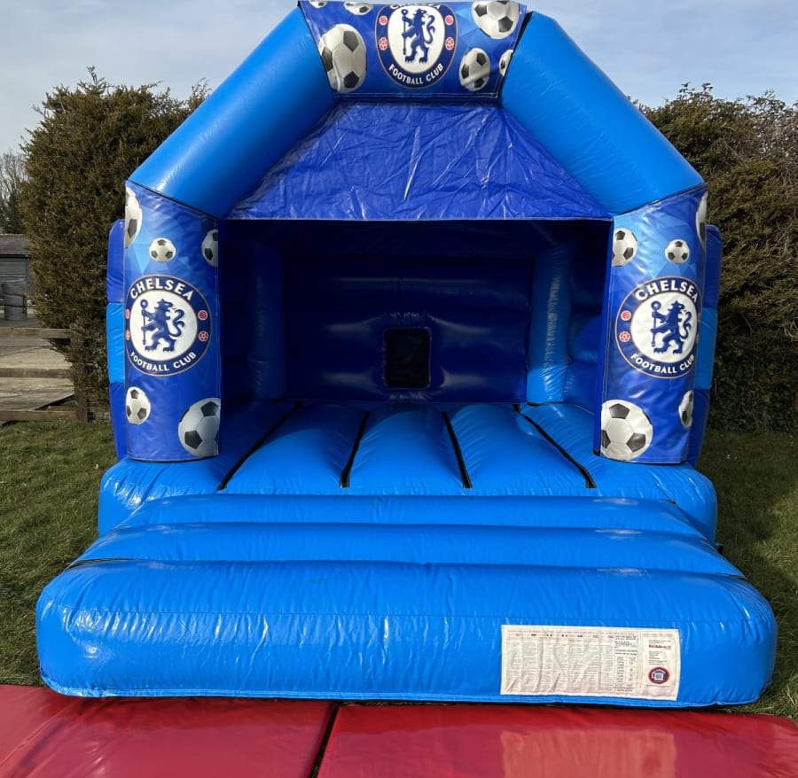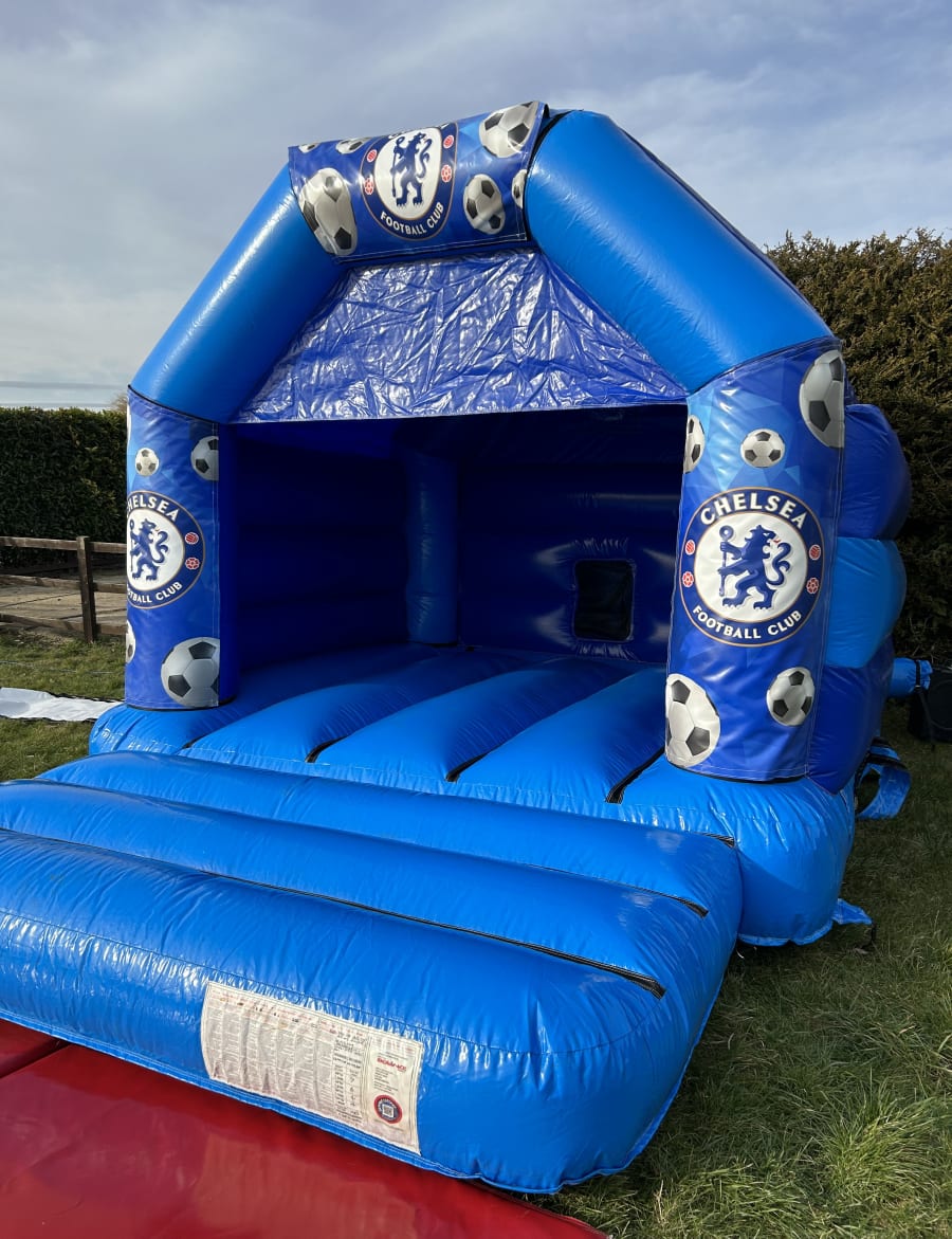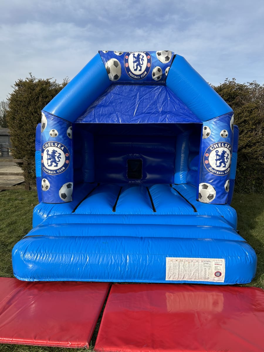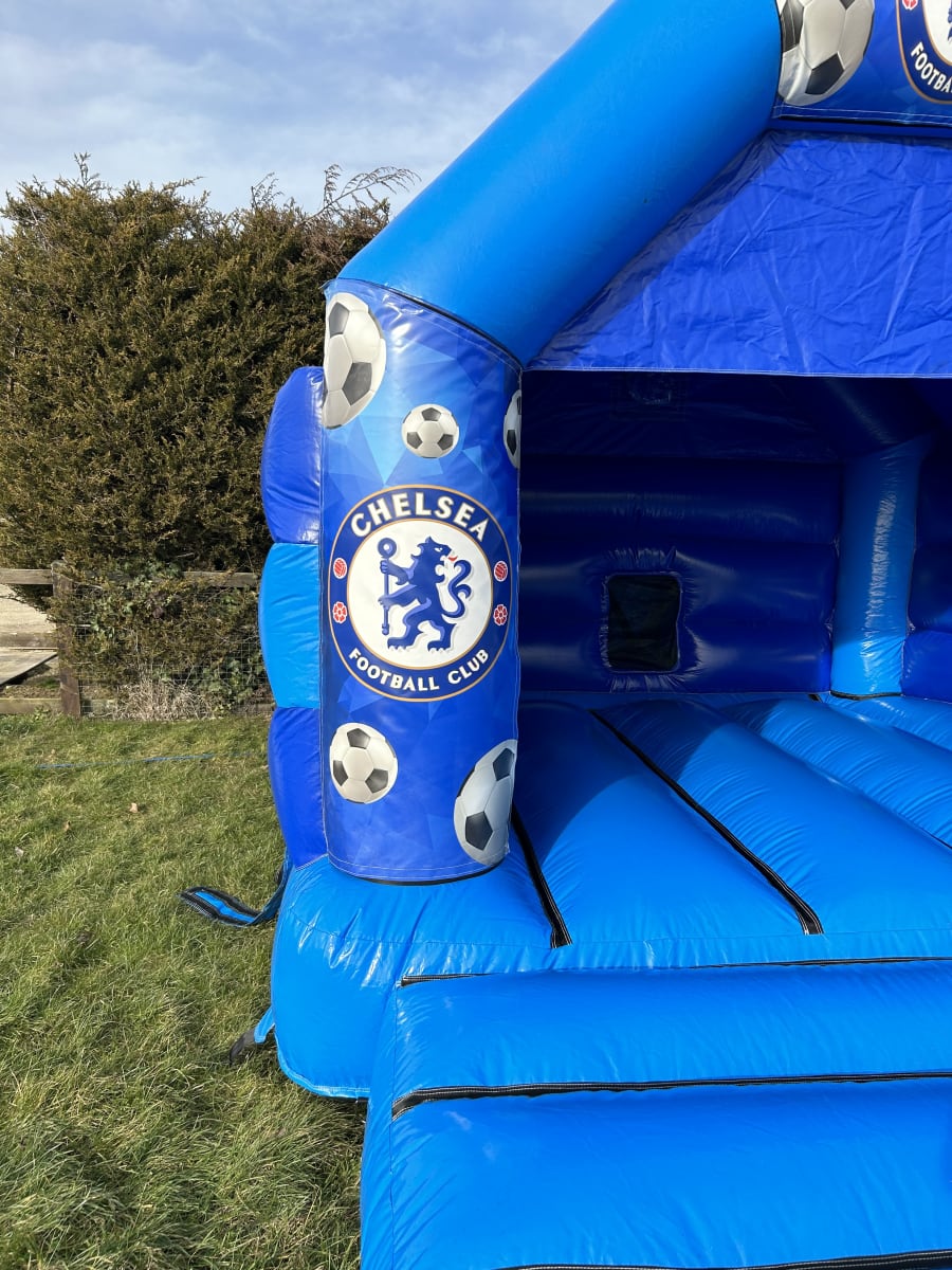 Looking for the ultimate idea for Chelsea mad football fans then we have the the perfect answer with our amazing disco ready Chelsea bouncy castle available to hire in Chelmsford and all surrounding areas , Made in a high gloss material and with this famous South London's clubs emblem all across the front this really will bring the atmosphere of Stamford bridge to your own back garden or venue and with the added option of having both disco lights and a blue tooth speaker added for a small additional charge your little ones can bounce and dance the night away like some of their hero's Lampard , Zola and Drogba , Want the party to go in to extra time or even a re match then we can offer both overnight hire options and discounted rates for multi day hires which can both be added on your booking form . For the little ones we have a fantastic range of Soft play to hire in Chelmsford as well as adult bouncy castles , Inflatable slides and assault courses available to hire in Essex . If its a sports themed party idea you are after then we hold one of the largest ranges of inflatable sports games in Essex from penalty shootouts to basket ball inflatables just see our full range on our sports themed hire page . Many of our clients like to book more than one hire item so we have some amazing offers available on our dedicated packages page including the very popular Football party package or the ultimate sports package should you not see a bundle you would like just CLICK HERE to email our office and we will custom build you a package to suit your party needs within your budget . Being the largest and most established bouncy castle company in Chelmsford is something we are very proud of and have been working directly for Chelmsford city council for over 12 years so you can be sure you are in very safe and trusted hands when using our company , Our vans also cover many other towns and villages in Essex supplying bouncy castle hire in Billericay ,Brentwood , Maldon and Wickford to name just a few for our full delivery area just CLICK HERE or call one of the team on 07895022736 and we can give you a quotation for other areas not shown including a full U.K. service . Booking your Chelsea football bouncy castle hire in Chelmsford has never been so easy with our online booking system just select your hire items and date to check availability then if they are free just hit book now and fill in all of your party details and we will do the rest , Yes it really is that easy and stress free to book your Chelsea football party ideas in Essex when using our company