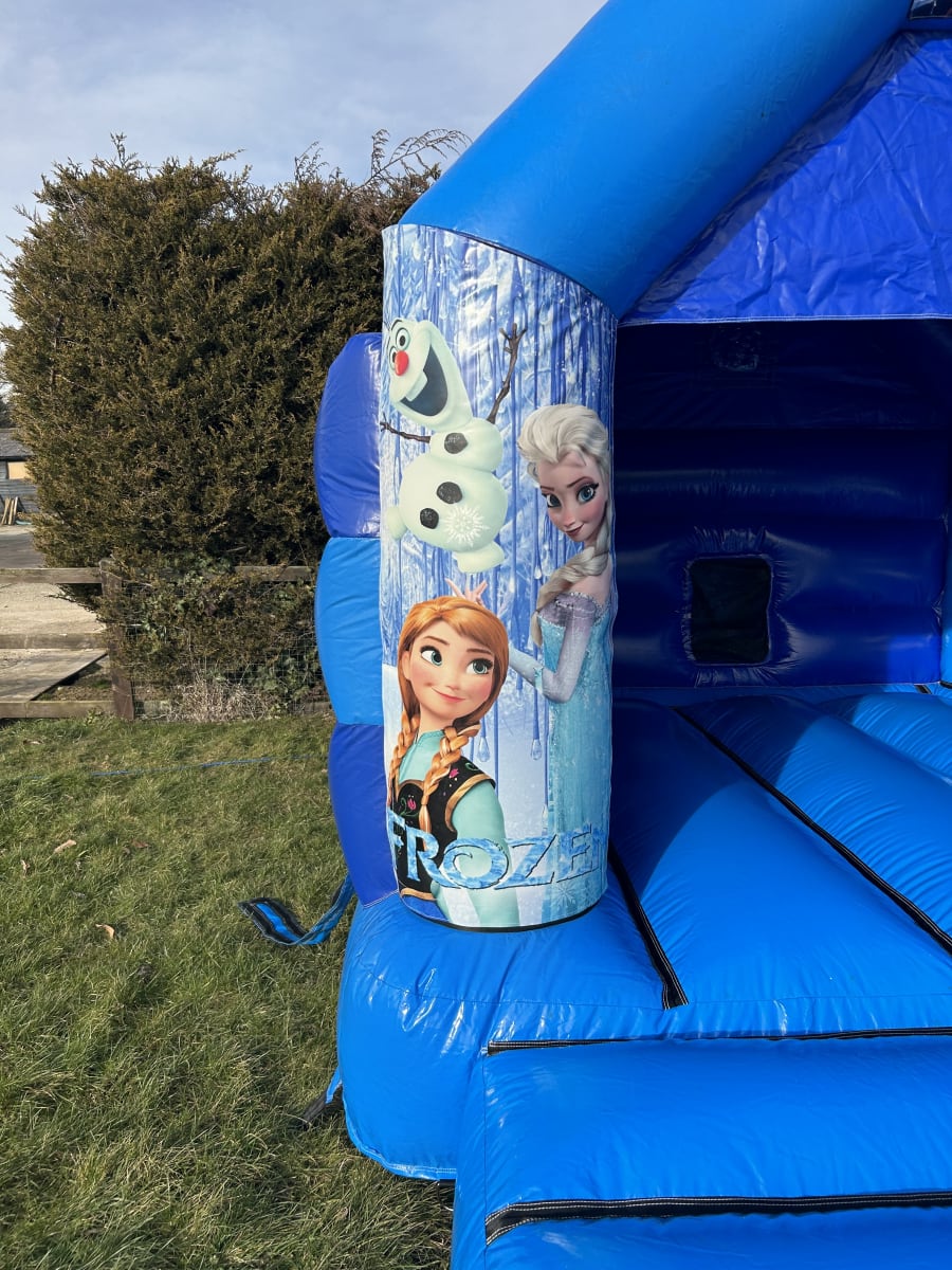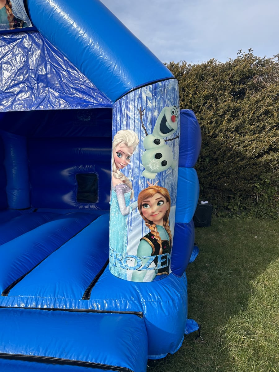 Are your children fans of the smash hit block buster film and want some Frozen party ideas in Essex then we have a fantastic Frozen disco ready bouncy castle available to hire in Chelmsford and all surrounding areas , Made in the U.K. in a high gloss material by one of the countries leading inflatable manufactures and with some of the movies leading characters including Anna , Elsa and of course the loveable little snowman Olaf all waiting on the front of the castle your little Frozen fans will have a day to remember , This castle also has the option of adding a disco light and blue tooth speaker so you can not only bounce but dance and sing the day away . Should you wish for your party to go on in to the night or even for a few days then we offer both an overnight hire service and discounted rates for multi day hires both of which you can add on your booking form online . Want an alternative theme for your party or just want some different children's party ideas in Essex then we offer many other bouncy castle themes such as super hero , princess and pirate bouncy castles as well as dinosaur and fun fair inflatables . If you would like something for the little ones then we have a fantastic range of soft play hire in Chelmsford as well as adult bouncy castles , Assault courses and inflatable slides we hire all over Essex and for some fantastic money saving ideas please do have a look on our packages page for some ideas or just CLICK HERE and we can custom build you a package to suit your hire needs . Although we are a Chelmsford based bouncy castle hire company our vans do cover most of Essex supplying bouncy castles and soft play hire in Brentwood , Billericay , Maldon and Witham to name a few just CLICK HERE to see our full area delivery page or call 07895022736 for further afield delivery charges . Booking your Frozen bouncy castle hire in Chelmsford has never been so easy and stress free when using our online diary and booking system just select your date and hire items to check if they are free then if they are just hit book now and fill in all of your party details it's that simple to make your Frozen party in Chelmsford one to remember when using our company .