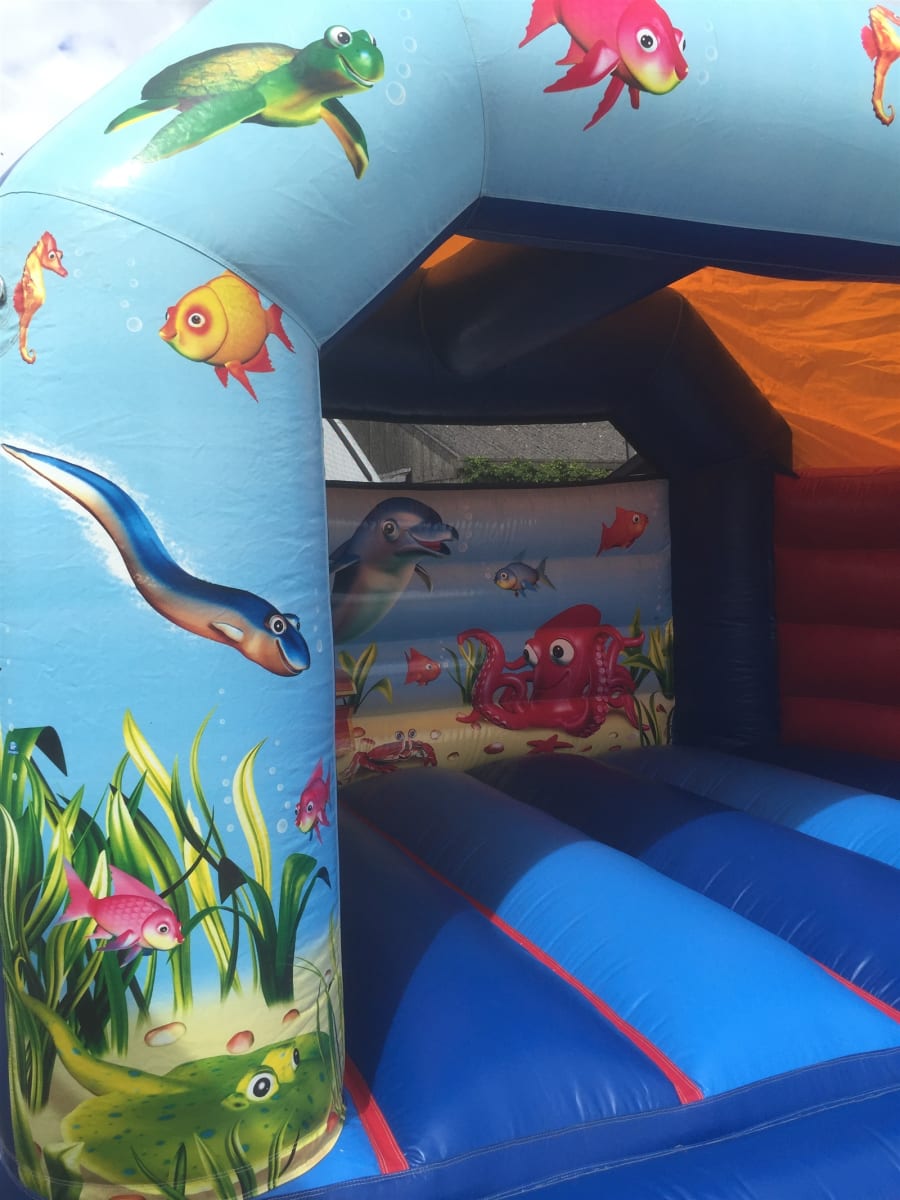This bouncy castle is new to the fleet with stunning under the sea artwork its a fantastic unisex inflatable perfect for all your little mermaids and deep sea divers to enjoy , As with all of our bouncy castles we hire this castle has a built in rain cover/sun cover so even the British weather wont spoil your party. If you wanted something a little more adventurous but in the same theme we also have a slide castle in the same theme as well as many more,1st2bounce inflatables also hold a wide selection of giant garden games, soft play, assault courses and even fun foods such as pop corn and candy floss. Not sure if this is the right inflatable for your event ? then simply contact one of our team and we will be only to happy to help you choose the right inflatable for your hire needs.
