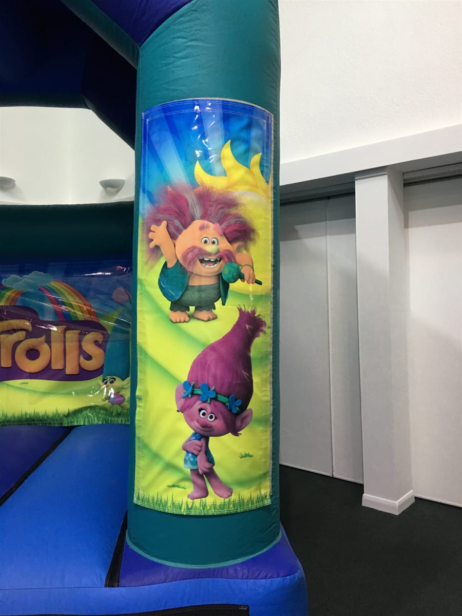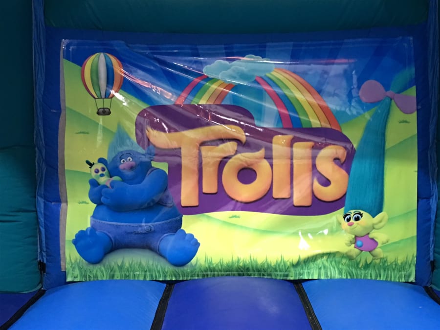 One of the most popular children's programs The Trolls has now arrived at 1st2bounce featuring all the favourite characters such as Branch,Cooper,Biggie and of course Poppy. This bouncy castle will be a sure hit for your children's party as with most of our bouncy castle fleet this inflatable has a built in rain cover so ensure the weather wont spoil your party, Our vans cover most of Essex
