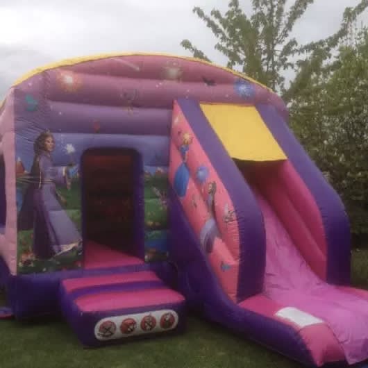 Its always every little girls dream to become a princess well what better way to make all her dreams come true with our top of the range princess slide castle,this princess bouncy castle to hire has a standard 12x12ft bounce area but has the added feature of a small slide coming out from the front of the inflatable,with beautiful princess themed artwork across the front of the castle and inside as well this truly is a castle fit for a princess and all her friends.this bouncy castle has a built in rain/sun cover so even the british weather wont stop your little girls dreams come true,as with all of our bouncy castles and slides we hire in chelmsford and surrounding areas you can book overnight hire online as well so the fairytale never has to end
