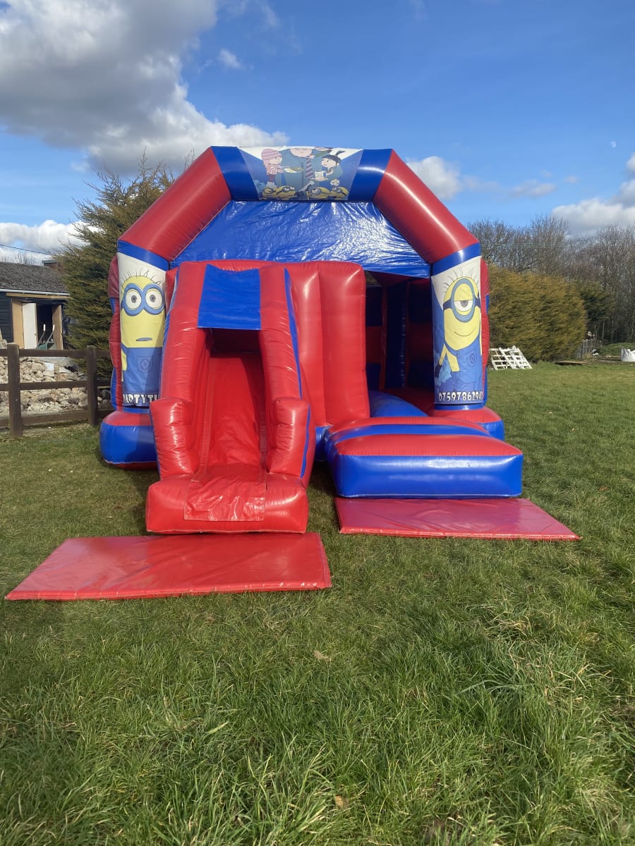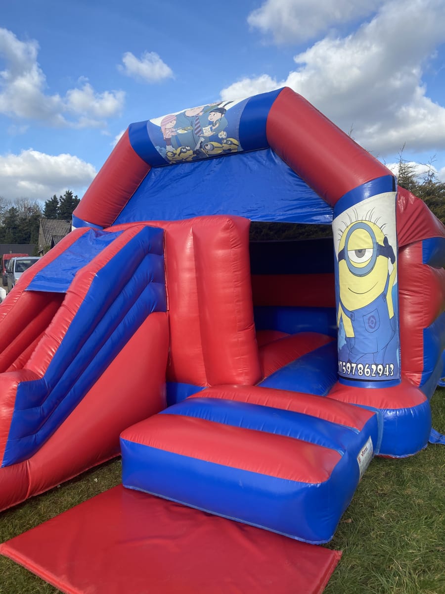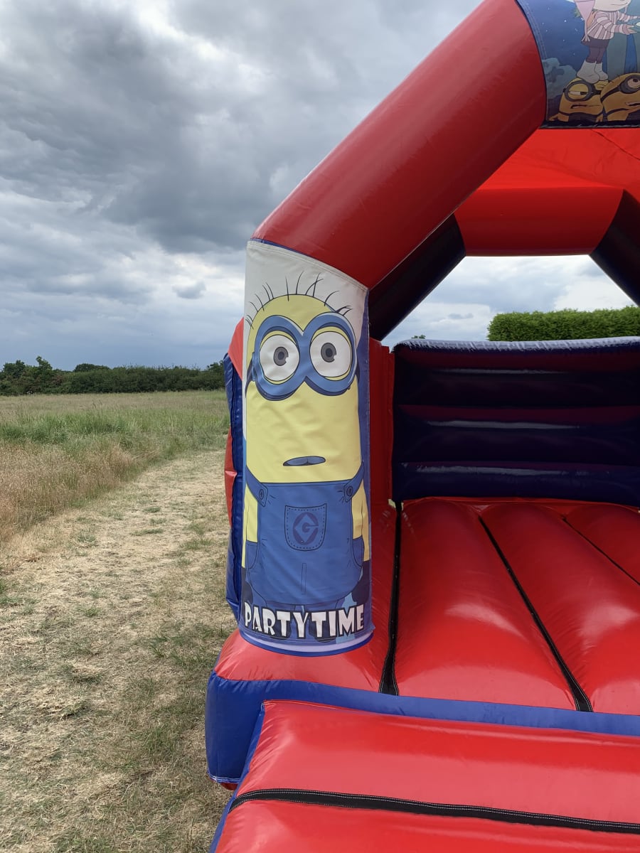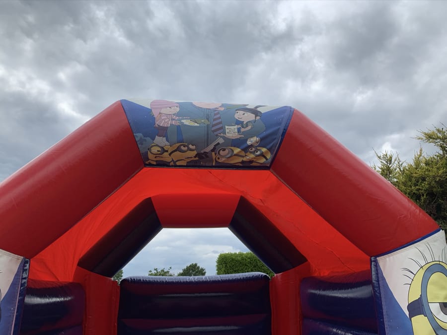 New to our hire fleet is the ever loveable minions bouncy castle with the added feature of a slide coming out of the front to keep your little minions super busy all day long , featuring the highly popular kevin the minion along with agnus the cute little girl and even Gru the leader of these cute little people . This bouncy castle has a built in sun and rain cover and is finished on a high gloss material for a stunning finish for that extra special minions party with your little ones . Our vans cover most of Essex every day just