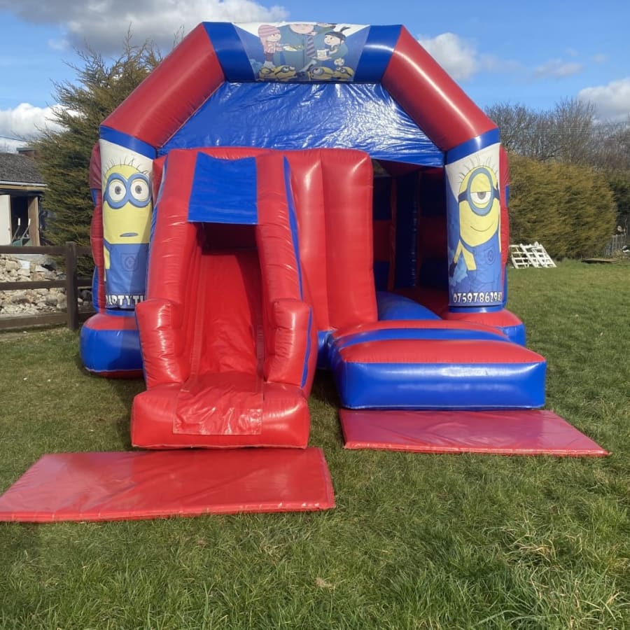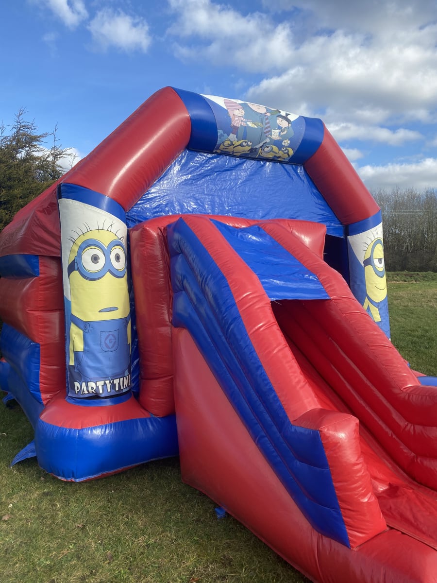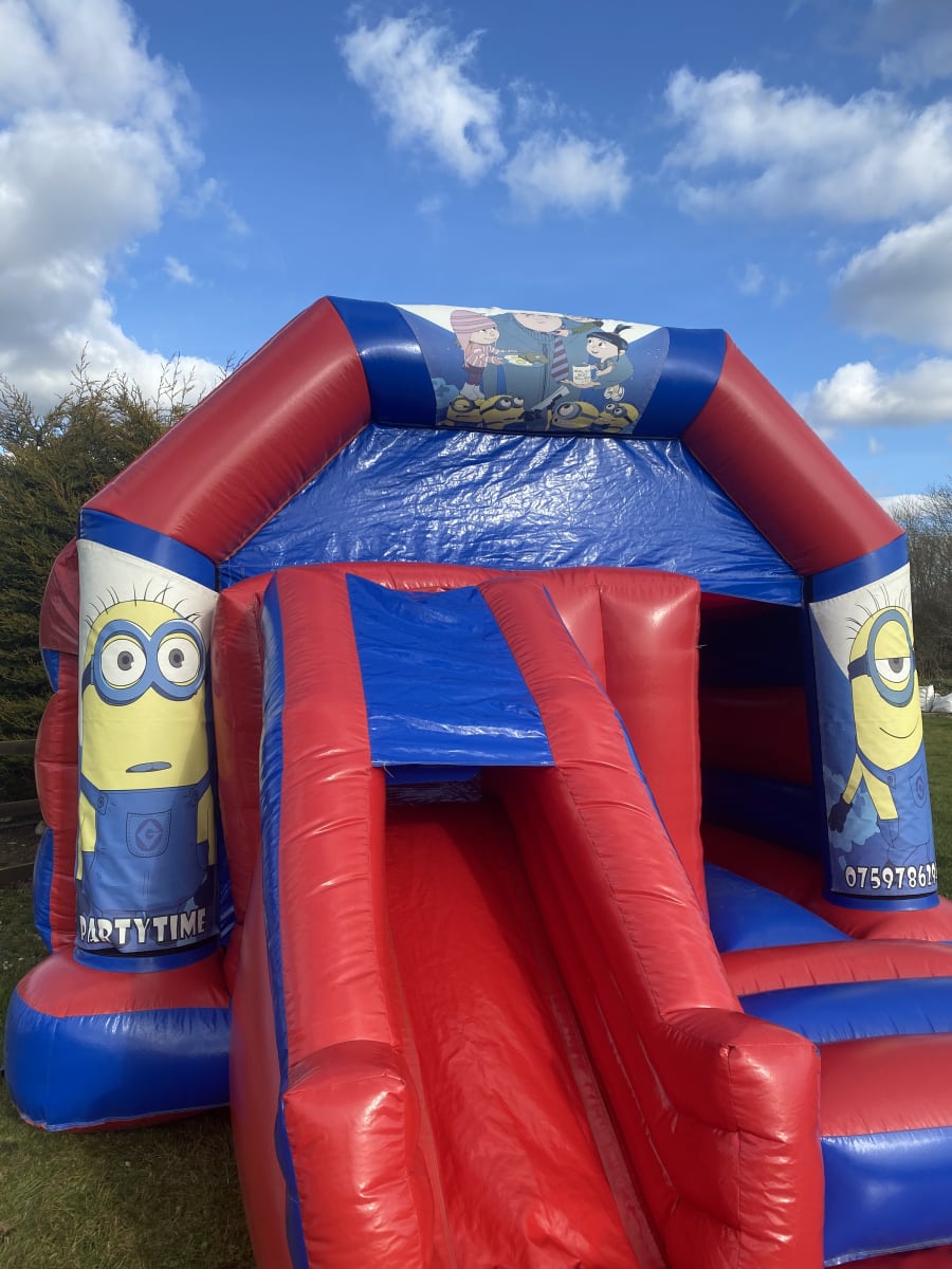 New to our hire fleet is the ever loveable minions bouncy castle with the added feature of a slide coming out of the front to keep your little minions super busy all day long , featuring the highly popular kevin the minion along with agnus the cute little girl and even Gru the leader of these cute little people . This bouncy castle has a built in sun and rain cover and is finished on a high gloss material for a stunning finish for that extra special minions party with your little ones . Our vans cover most of Essex every day just