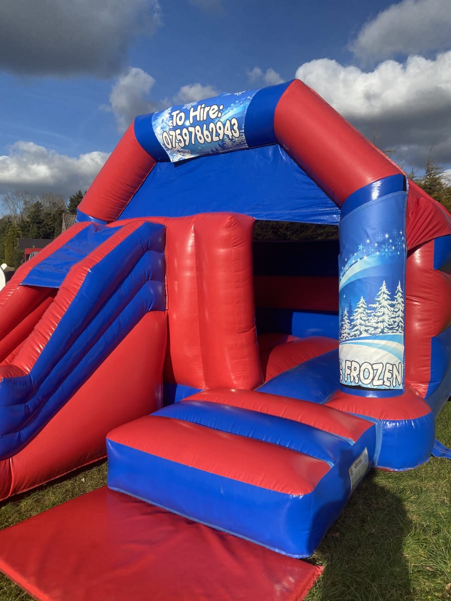 Always a popular time of the year for children is Christmas and we have this fantastic winter wonderland bouncy castle with a built in front slide ready for your party or event , as the artwork is in a winter theme it also is perfect for any frozen themed party you may be having . Featuring bright and vibrant artwork on a high gloss inflatable this really is a special looking bouncy castle and with a built in rain and sun cover even the weather wont stop your Christmas or frozen party from going ahead . We are a Chelmsford based bouncy castle hire company but our vans cover most of Essex every day from