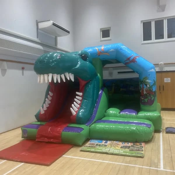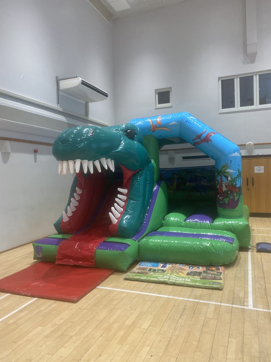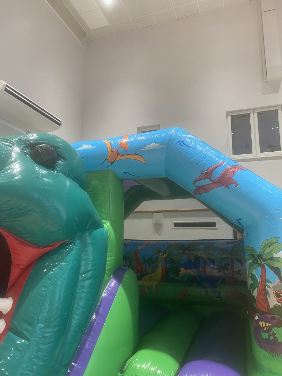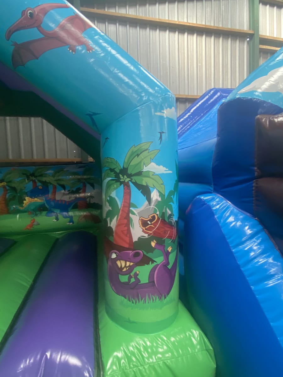Are your children looking to step back millions of years in time to the jurassic era when these giant dinosaurs ruled the planet ? Well we have the perfect Dinosaur bouncy castle available to hire in Chelmsford and all surrounding areas across Essex , not only is this dinosaur castle both stunning with bright and vibrant gloss artwork but has the added feature of a built in slide on the front in a custom made 3D finish with a giant T-Rex dinosaur head as the exit of the slide . As one of the leading bouncy castle hire companies in Essex we are so pleased to be one of the 1st in the Uk to have one of these inflatables on our comprehensive fleet of bouncy castles , slides and assault courses that we have to offer , we also have a wide range of soft play hire to hire in Chelmsford and all surrounding areas please CLICK HERE to check we cover your location you can Email one of the team via our contact page . As well as offering dinosaur bouncy castles hire we also have one of the largest ranges of pirate inflatables and princess castles anywhere in Essex to date . Looking for some party extras such as funfair games or giant garden games then why not check out our Extras page for some fantastic ideas or call one of the team on 07895022736 and we would be only to happy to help make your party a huge hit for your guests . Bookings can be made 24/7 via our online diary and booking systems it really is that easy and stress free when using 1st2bounce inflatables .