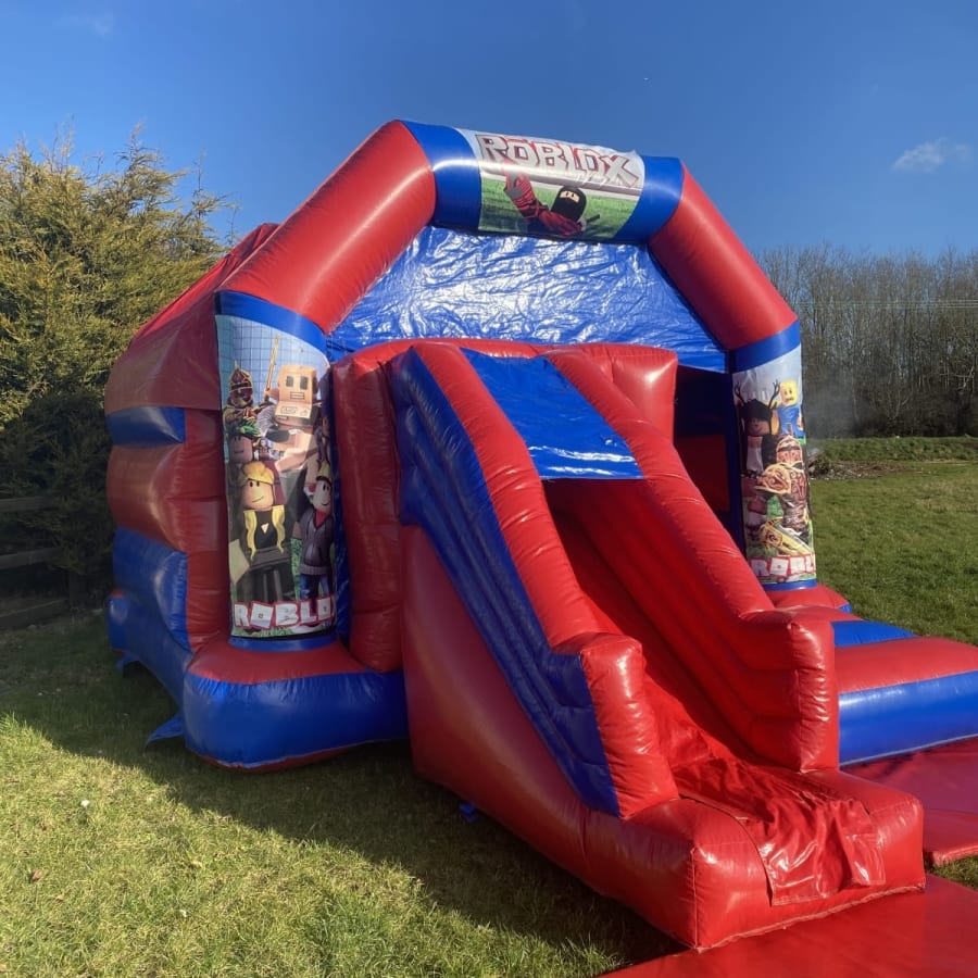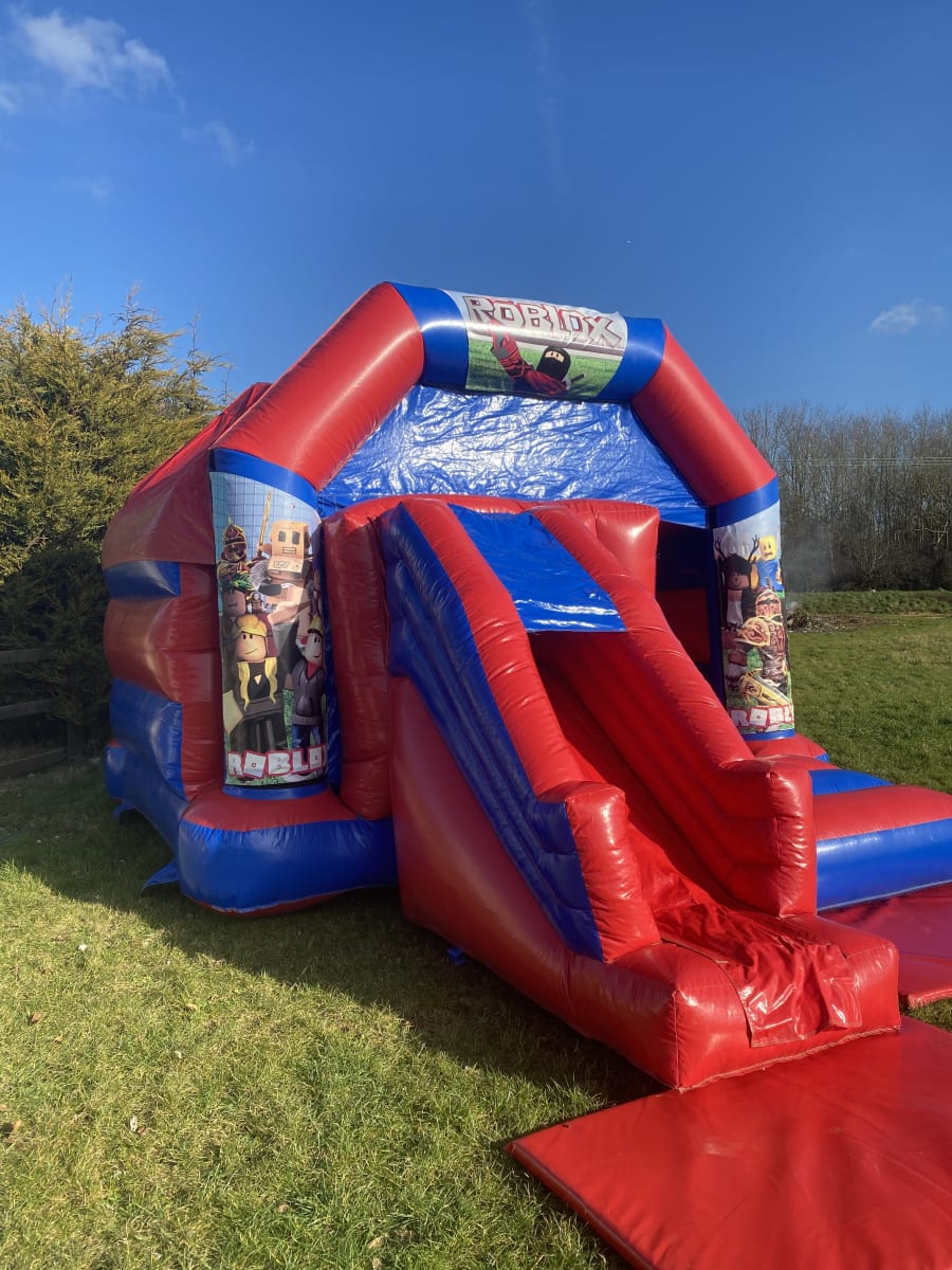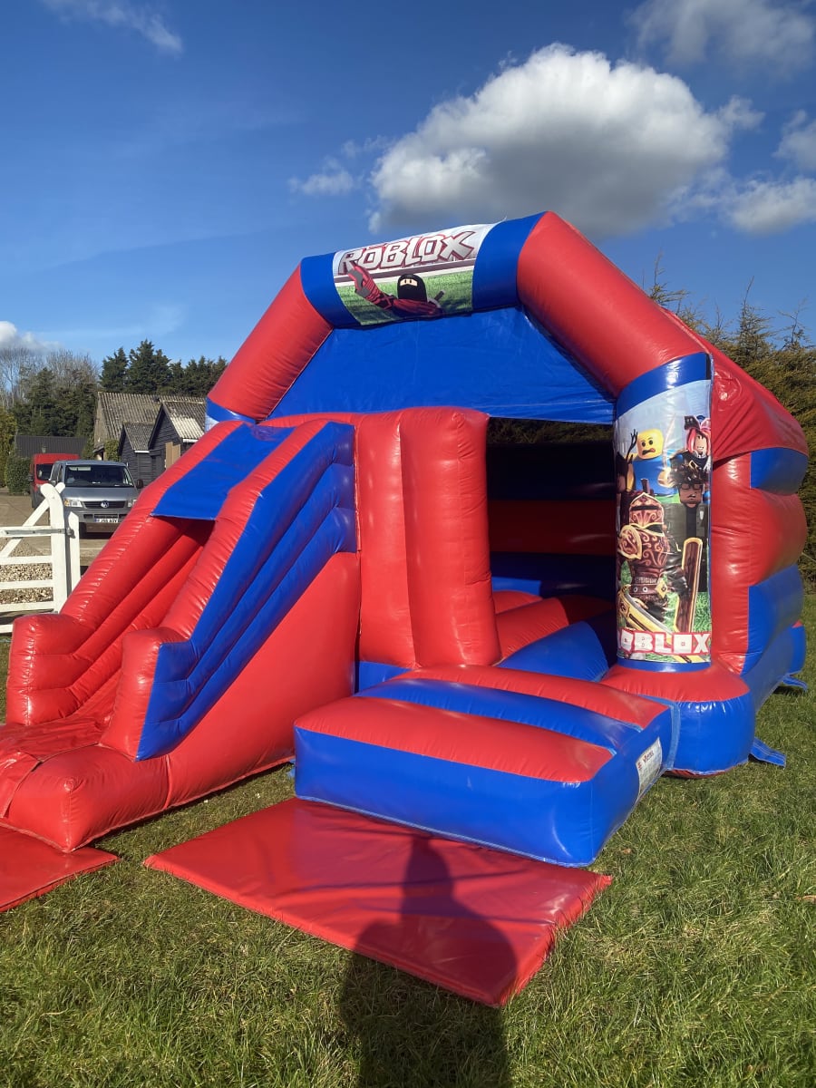 New to our fleet is the fantastic Roblox themed slide bouncy castle to hire in Chelmsford , featuring a stunning high gloss material and with bright and vibrant artwork this really is an amazing looking roblox themed bouncy castle to hire . Looking for a different theme for your party or event then we also have many other themes of inflatables such as pirate bouncy castles , dinosaur inflatable hire , super hero castles and even princess bouncy castle hire all available to hire in Chelmsford and all surrounding areas just CLICK HERE to check we cover your area . Our company also has a wide range of adult bouncy castles to hire along with inflatable slide hire , assault courses and even soft play hire for the younger guests at your party or event , many of our clients look to book several items at once so with this in mind we have created a dedicated money saving packages page or just CLICK HERE to email our office and we can custom build you a package to suit your hire needs .For any further help or advice please see our FAQ,s page or call one of the team on 07895022736