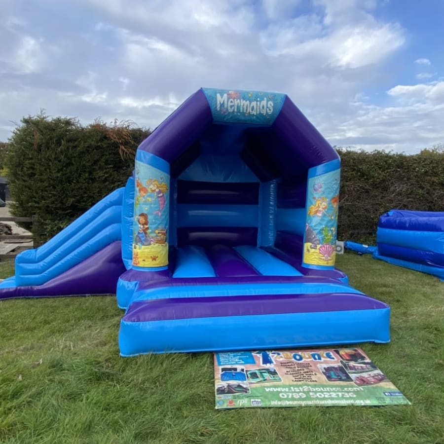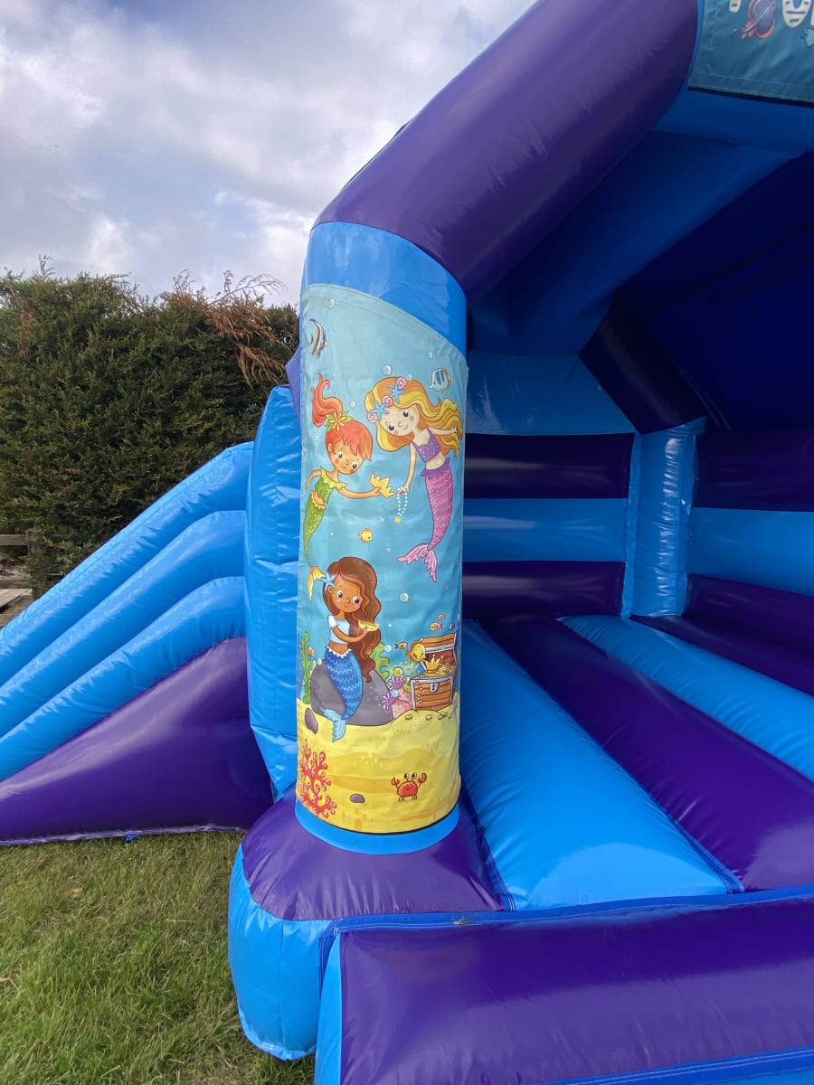 Is there anything more magical in the ocean than a Mermaid ? Half human half fish these mysterious creatures have graces the sea's in folklore for hundreds of years and most young girls often dream of being a mermaid themselves well with our stunning Mermaid bouncy castle we have to hire in Chelmsford we can make these dreams come true . Made in a stunning high gloss material and with amazing colourful Mermaid artwork this really will have your little mermaid fans jumping for joy on their special day and with the extra feature of a slide coming out from the side the fun will last all day long while they play out their mermaid fantasies and with a built in sun / rain cover not even the good old English weather will bring your mermaid party to an end , Want the party to go on in to the night or even for a few days then we offer both an overnight hire option and also discounted rates for multi day hires both of which can be done on your booking form . Looking for something for the younger guests at your party then we have a wide range of