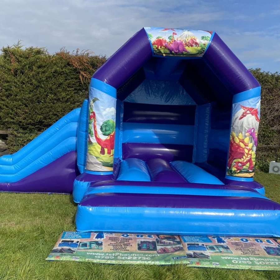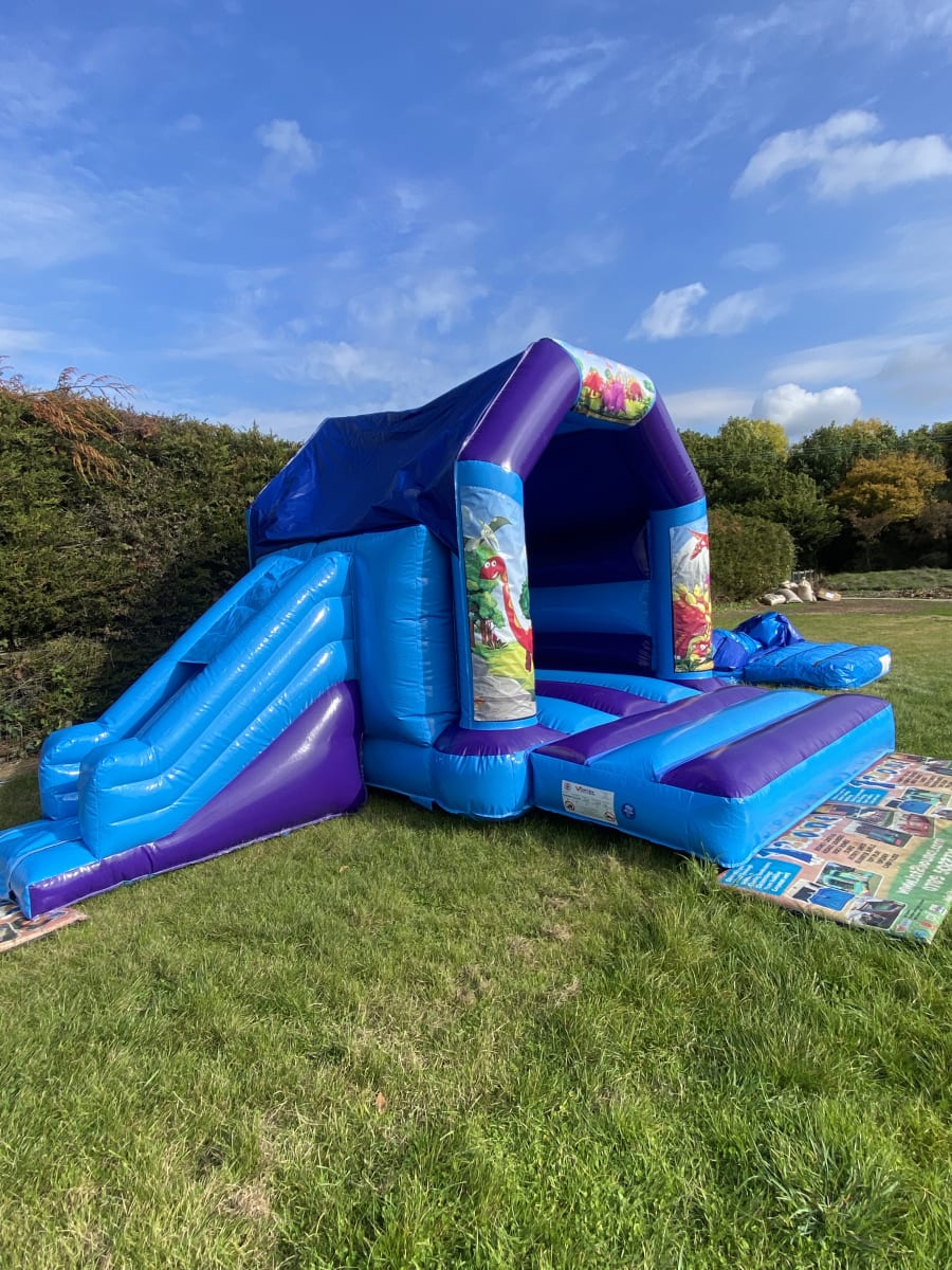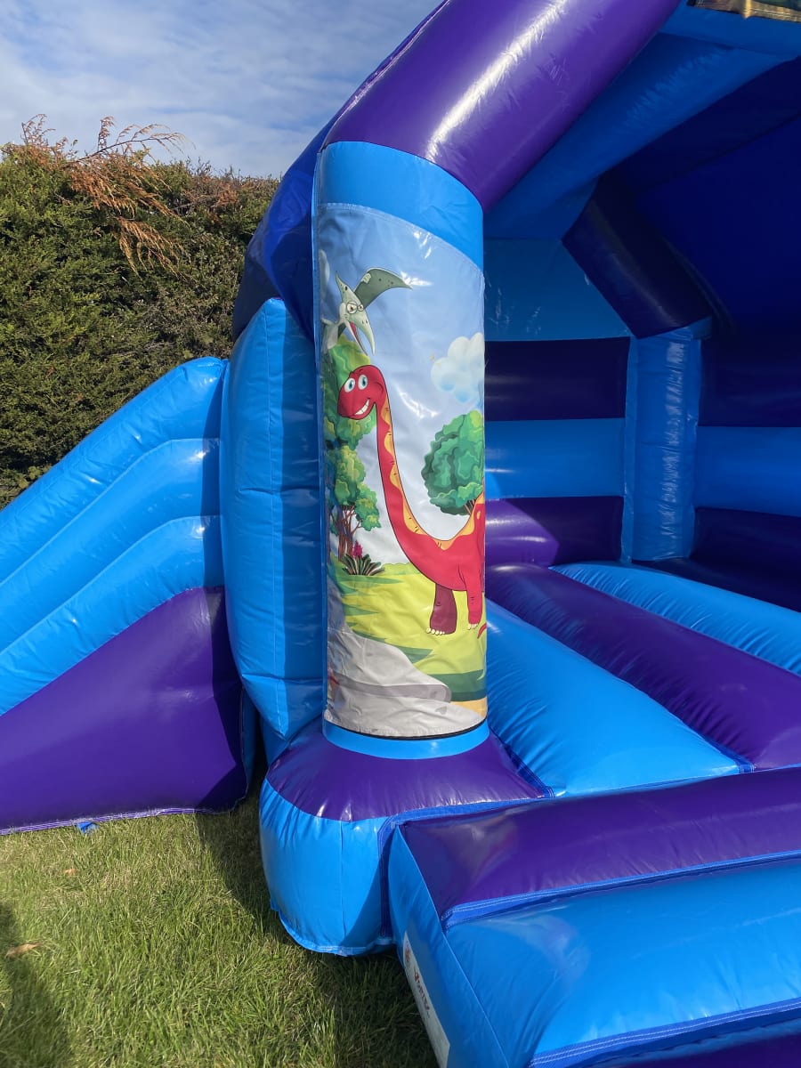 Step back in time when millions of years ago these gigantic beasts ruled the planet until the ice age wiped them all out well we have brought them back to life with our fantastic dinosaur themed bouncy castle , made in a high gloss material and with stunning dinosaur artwork on it, this inflatable will really bring the jurassic experience to any dinosaur party or event and with a built in slide coming out from the side this will keep your dinosaur rangers entertained all day long . Our company prides itself on being able to have one of the largest ranges of dinosaur inflatables to hire in Essex from standard children's castles to 3D slide castles and fun runs . If you are looking for other themed items then we also offer a very wide range of pirate , princess , super hero and fun fair inflatables as well as soft play hire , inflatable slides and even large assault course hire . Although we are a Chelmsford based inflatable hire company our vans cover a very wide area just CLICK HERE to check we cover your area or call one of the team on 07895022736 and we will be only to happy to help . Many of our clients like to book more than one item so with this in mind we have added a dedicated package page with some fantastic money saving deals or you can just CLICK HERE to email our office and we can build you a custom package to suit both your budget and hire needs . Most of the common questions we get asked can be answered on our FAQs page and all bookings can be made online 24 hours a day 7 days a week using our booking system . Want your party to go on into the night then we also offer an over night hire service at a small charge and you can even add some great extra items to your booking such as inflatable darts , connect 4 and even giant space hoppers all of which can be found on our party extras page .