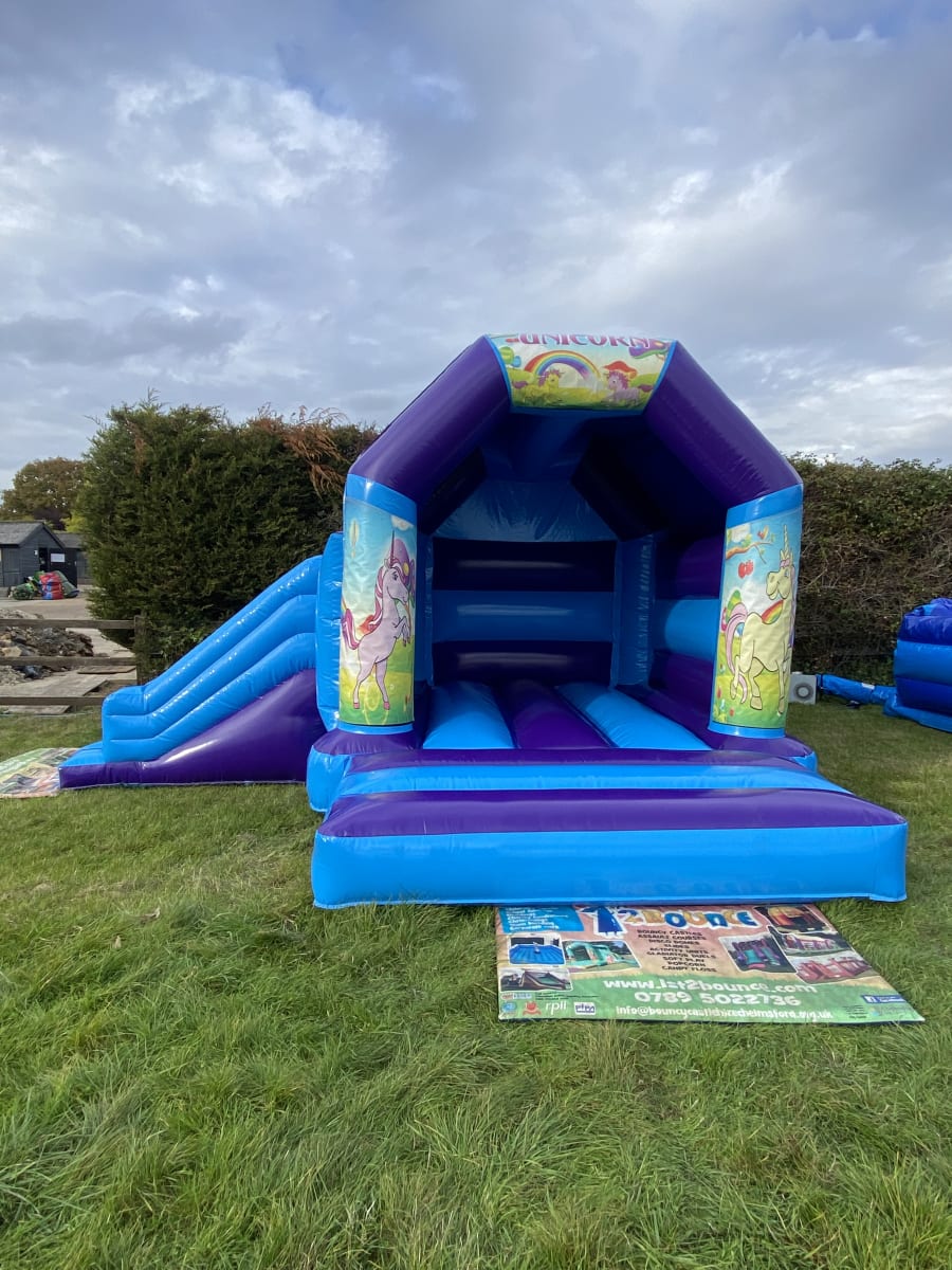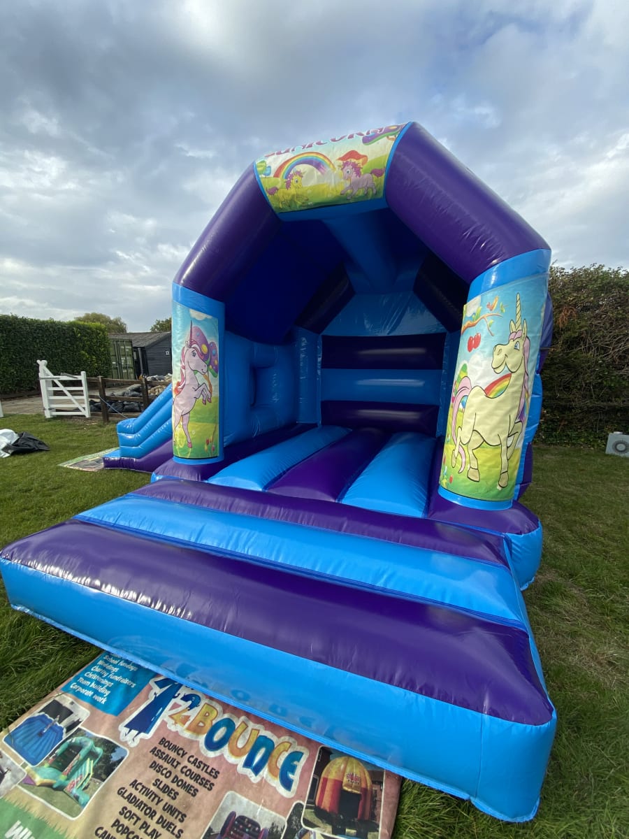 Looking for Unicorn party ideas in Essex then we have the perfect answer with our amazing Unicorn bouncy castle available to hire in Chelmsford and all surrounding areas , Made in a stunning high gloss material with a built in weather protection roof this castle really will bring the magic to any unicorn themed party as your children climb on to the inflatable surrounded by these magical fairy tail creatures on the bright and vibrant artwork and for a little finishing touch this Unicorn bouncy castle even has a slide coming out from the side to ensure maximum entertainment for all your party guests for the whole day . Should you wish your party to go on in to the night then we also offer and over night hire service and discounted rates for multi day hires both of which you can add to your online booking form . Worried that your garden is not big enough for the width of this inflatable then fear not as we also have the same unicorn castle to hire in 3 other sizes from a front slide and standard size castle to our equally amazing Disco ready unicorn bouncy castle all of which are available to hire in Chelmsford and surrounding towns and villages . Want something for the younger guests then why not have a look at our fantastic range of soft play to hire in Chelmsford page and for the older children we also have a wide range of adult bouncy castles , inflatable slides and assault courses we hire all over Essex . Many clients ask to book more than one hire item so with this in mind we have a dedicated packages page with some fantastic money saving deals should you not see a package that suits your party then just CLICK HERE to email our office and we can custom build you a package to suit your party requirements . If you are looking for other party ideas or themes then we also have a large selection of Princess bouncy castles to hire , Pirate inflatables and even Super Hero castles that we hire all over the Chelmsford area . Being not only the largest but also the most established Chelmsford based bouncy castle hire company is something we are very proud of as we now enter our 12 year of working directly for the City council to date so you can be sure your party is in safe and trusted hands when booking with our company , Our delivery vans cover most of Essex from soft play and bouncy castle hires in Billericay and Brentwood , Maldon and Wickford to see our full delivery areas just CLICK HERE or call one of the team on 0789502273 for further afield delivery charges . Booking your Unicorn bouncy castle hire in Essex has never been so easy with our user friendly booking system simply select your hire items and date to check availability then if they are free just hit book now and fill in all of your party details you will then receive a confirmation booking email leaving you to relax and know that your Unicorn party arrangements have been sorted with just a few clicks of a keyboard it really is that easy and stress free when using 1st 2 bounce inflatables .