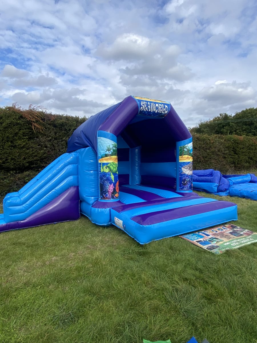 Looking for under the sea party ideas in Essex then we have this amazing side slide under the sea bouncy castle available to hire in Chelmsford and all surrounding areas , made in a high gloss material and with a built in rain / sun cover and to complete the under water theme it has stunning bright and vibrant artwork of the ocean and its creatures that lie beneath . Want the party to go on in to the night or even for a few days then we offer both an overnight hire service and discounted rates for multi day hires both of which can be added to your booking form online . Keeping the under the sea theme going for the little ones we have a matching soft play set , ball pool and even a peak board for those memory making photo opportunities all of which can be found on
