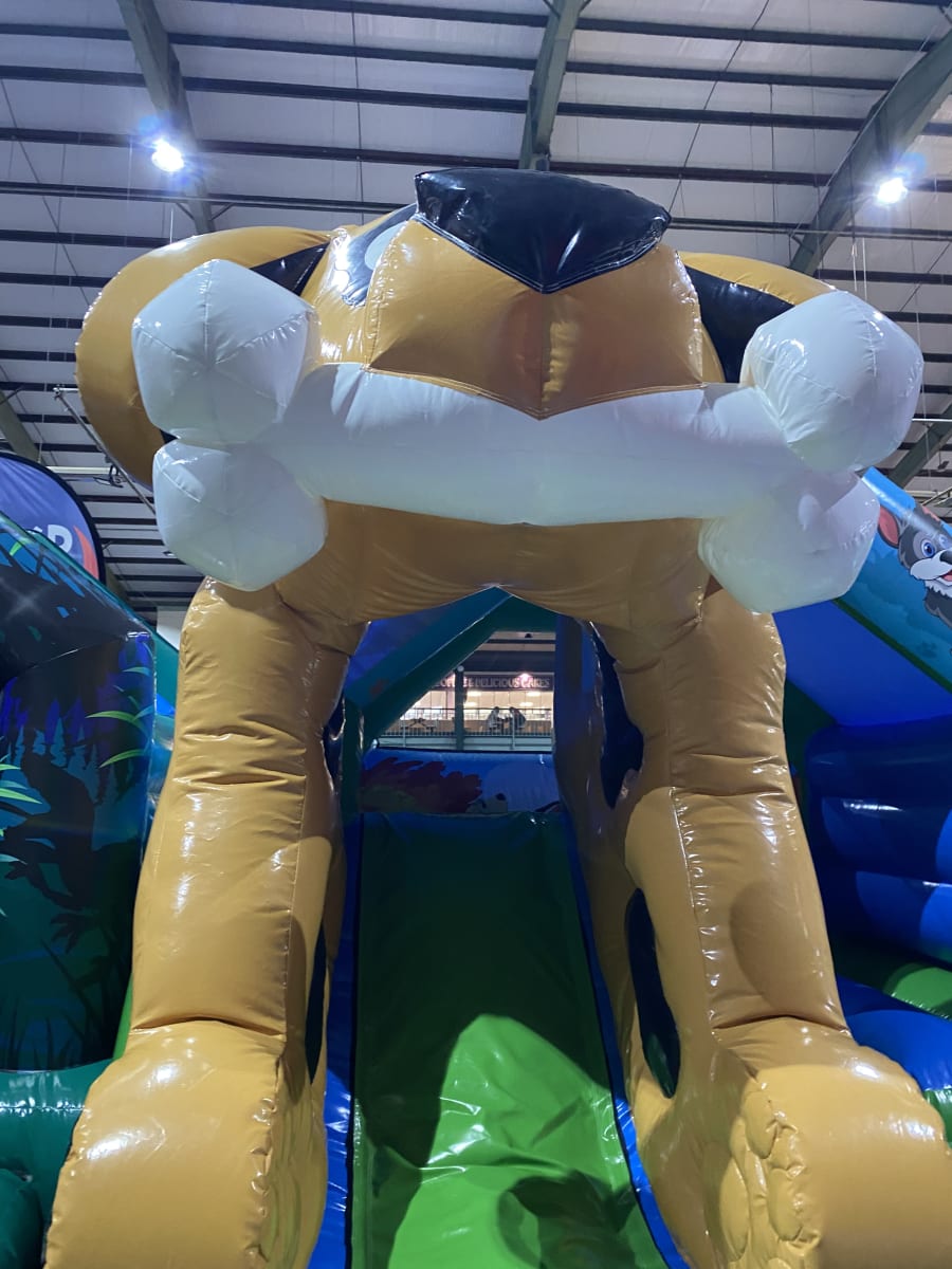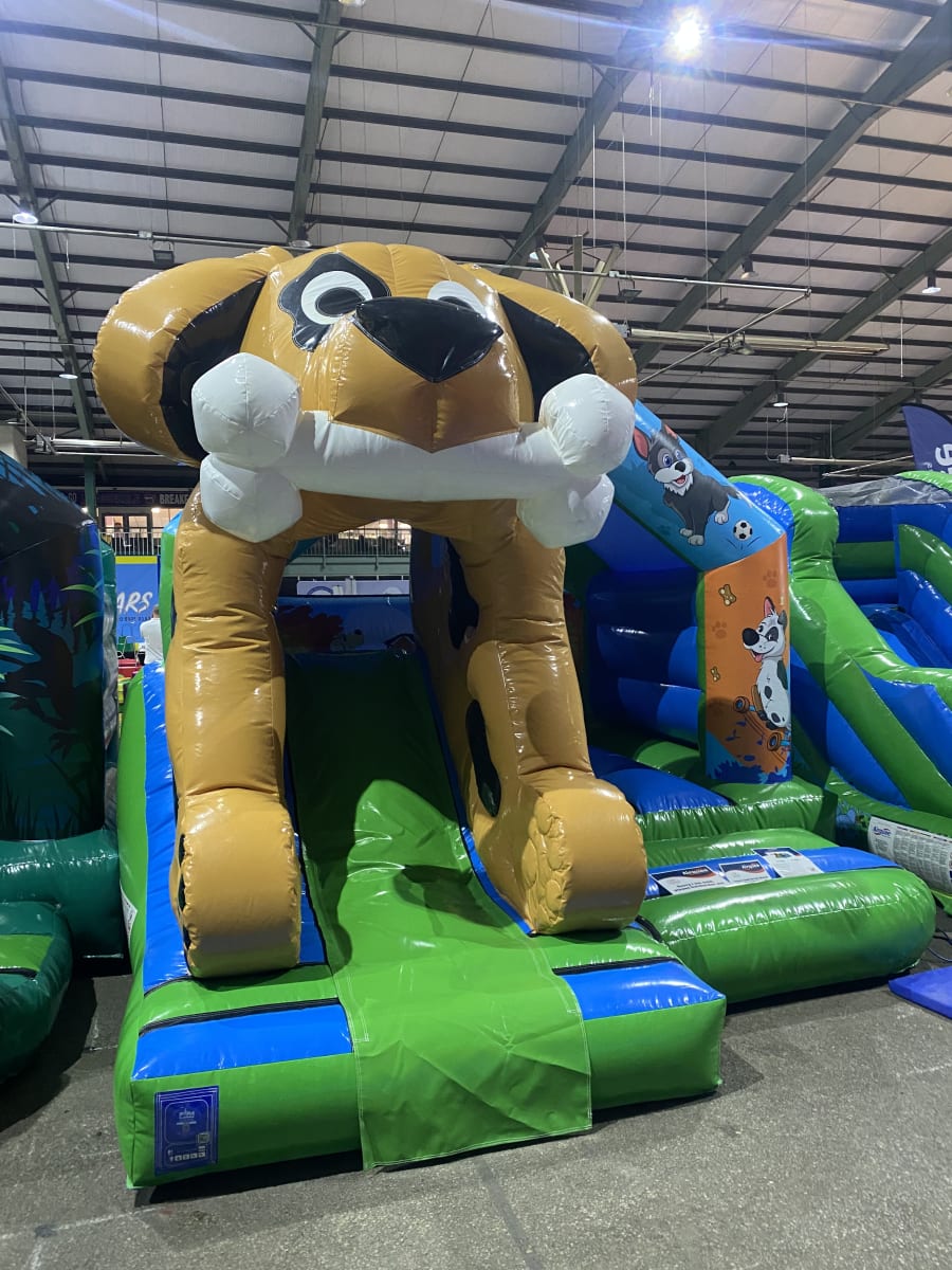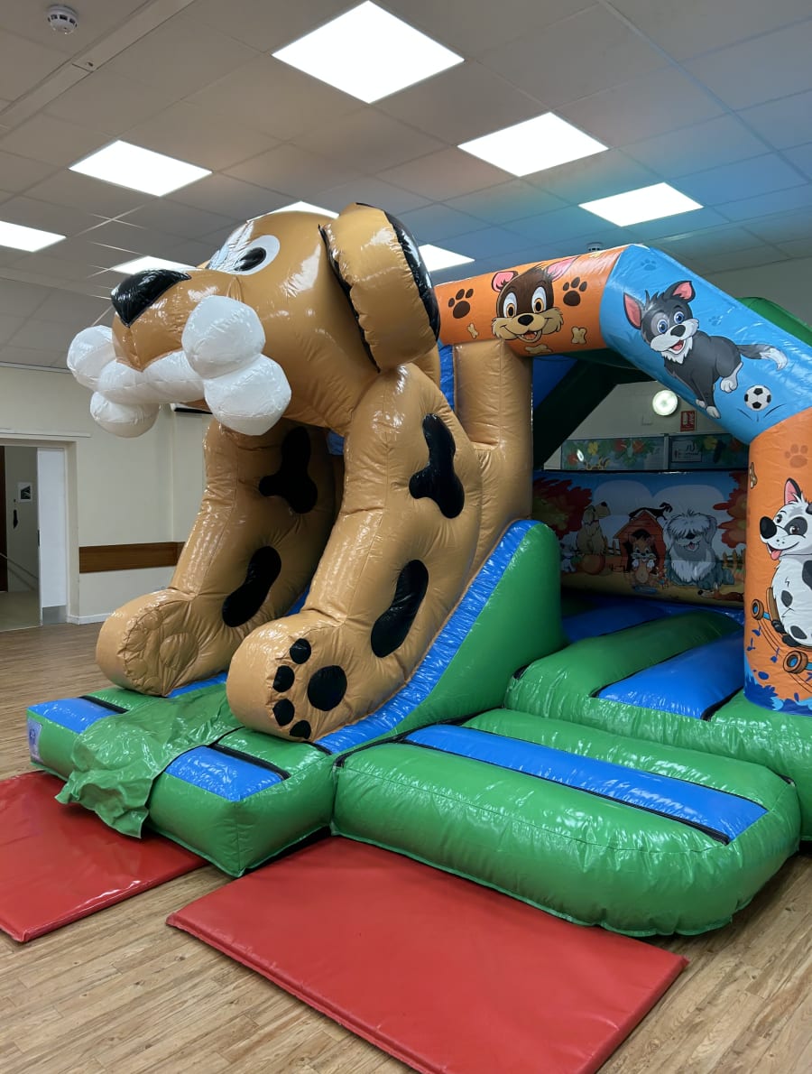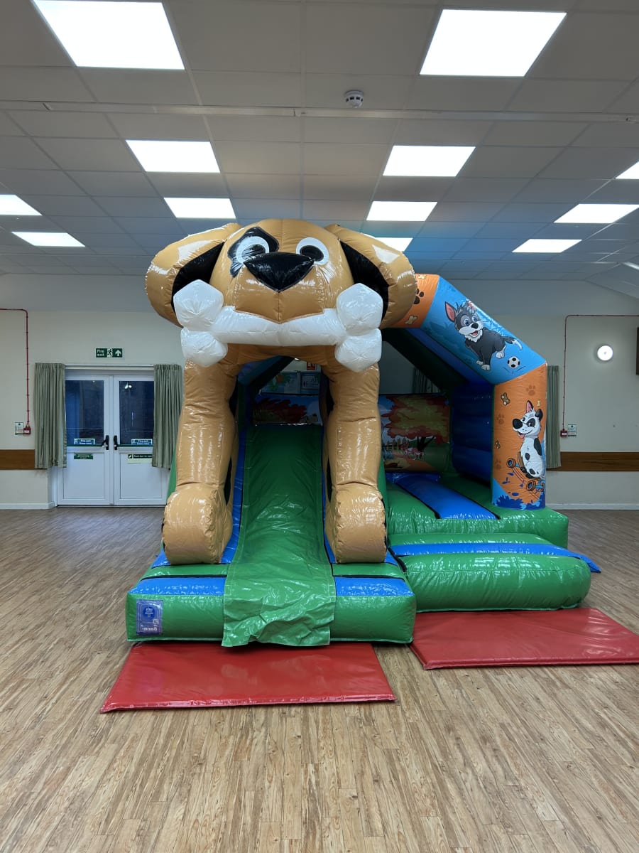 There is not a person in the world who's heart doesn't melt when they meet a puppy dog and the same can be said about this totally stunning 3D puppy dog bouncy castle , with a standard bounce area and the added feature of a built in slide coming out from the front this really will keep all your little ones entertained all day long , Made in a high gloss finish and stunning artwork wasn't enough for us we have had the slide exit built in the design of a real life cute and adorable puppy dog complete with a huge toy bone . We currently are the only company in Essex to have one of these stand out inflatables as we always like to keep our range of bouncy castles to hire in Chelmsford ahead of other inflatable companies with our continual investment program . If dogs aren't your thing then we also have a wide range of other bouncy castles in themes such as princess bouncy castle hire , pirate themed inflatables to hire , dinosaur and even the largest range of fun fair inflatables in the whole of the U.K. . We not only have bouncy castles available but a wide range of other items such as inflatable slide hire , assault courses , activity units , inflatable football and basketball shootouts and even soft play hire for the younger guests at your party or event . Although we are a Chelmsford based bouncy castle hire company our vans cover many other parts of Essex just CLICK HERE to check we cover your area or call one of the team on 07895022736 and we can give you a quote for other delivery areas . All of our inflatables are available to book overnight so you can party into the night or why not book for the weekend as we can offer great deals on multi day hires all of which can be booked online 24 hours a day 7 days a week using our online diary and booking system . Want to add other items ? then we have a massive range of products such as inflatable darts , giant connect 4 and even inflatable coconut shys and large space hoppers all can be found on our Extras page . Looking to book several items such as a bouncy castle and soft play or an assault course and a slide then head on over to our dedicated Packages page for some great money saving ideas or just CLICK HERE to email our office and we can custom build a package to suit both your budget and hire needs , it really is that easy to plan and book your party when using our company .