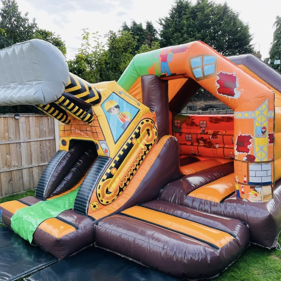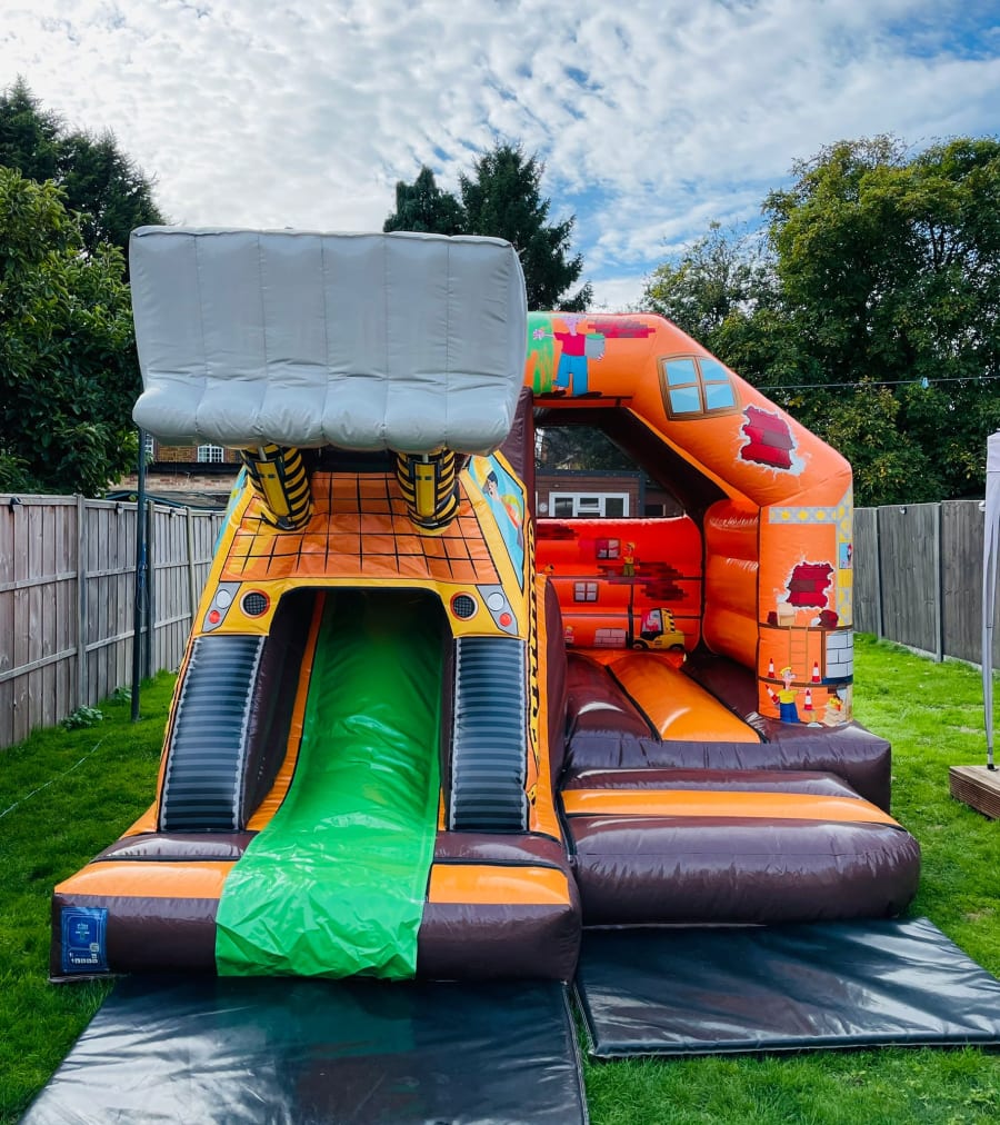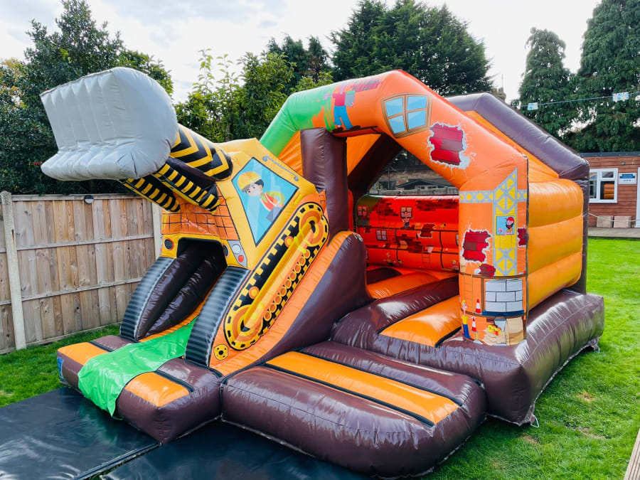 Brand new on to our fleet of bouncy castles to hire in Chelmsford is this show stopping Digger bouncy castle made in a high gloss material and with stunning bright and vibrant art work this really is the real deal then add a full size 3D digger on the exit to the slide you have the ultimate Digger Bouncy castle to hire in Essex , we are only one of a hand full of companies in the U.K. to have this castle on their hire fleets due to our continual investment program in purchasing state of the art ground breaking products to insure our clients get the very best from the most established inflatable hire company in Chelmsford . The slide combination castles for many years have proved to be one of our most popular items as they offer not only a standard bounce area but with the added twist of a slide coming out of the front to keep your party guests entertained all day long or even overnight if you wish to book for the never ending party experience , we now how over 35 different slide combination bouncy castles to hire with themes such as dinosaur , pirate , jungle , under the sea and princess just CLICK HERE to see our full range of slide combination castles . We also have a massive range of normal children's bouncy castles , assault courses , high energy activity units , soft play hire and giant inflatable slides . Although we are a Chelmsford based bouncy castle hire company our vans also cover a wide range of towns and villages across Essex just CLICK HERE to see our areas covered page or call one of the team on 07895022736 if you cannot see your area and we can supply a delivery quotation . Many of our clients look to book more than one item so we have a dedicated packages page for so great money saving ideas or just send our office an email via our contact page and we can build a package to suit both your budget and hire needs . Many of the questions we get asked can be answered on our FAQs page or just get in touch and we will answer any other queries you may have . Booking your digger bouncy castle hire has never been so easy using our online diary and booking system just select your date to check it is available then if it is just hit book now and fill in your details of your party or event and we will take over from there it really is that easy when using our company to make your party the talk of the town .