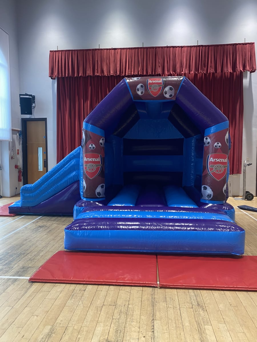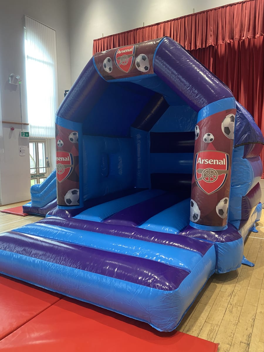 Are your children fans of the famous red and white north London giants Arsenal or the Gunners as they are often referred to then we have the perfect inflatable and a must have for any Arsenal football fan , Made in a high gloss material and with the clubs emblem all over the front of the castle this really will make any young gunners football themed party one to remember and with the added twist of having a slide coming out from the side your little gooners will be kept entertained all day long or if you would like the fun to go on in to the night or even all weekend we offer both with an overnight hire service as well as multi day hires at discounted rates both of which you can select on your booking form . Want to have the ultimate football themed party then we have some great football packages available all of these can be found on our dedicated packages page with some fantastic money saving deals or just CLICK HERE to email our office and we can custom build you a football party package to suit your budget and hire needs . Want something for the younger guests then we offer a wide range of soft play hire in Chelmsford or for the older more adventurous guests we have a large selection of assault courses to hire in Essex , inflatable slides and adult bouncy castles . Although we are the most established bouncy castle hire company in Chelmsford our vans do cover many other areas supplying inflatable hire in Billericay , Brentwood , Maldon , Wickford and South Woodham Ferris just CLICK HERE to see our areas covered page or call one of the team on 07895022736 for out of areas delivery charges . Booking your Arsenal bouncy castle hire has never been so easy using our online diary and booking system , just select your date and items you require to check they are free on your chosen date then if they are just hit book now and fill in all your details it really is that easy and stress free to book your Arsenal bouncy castle hire when using our company