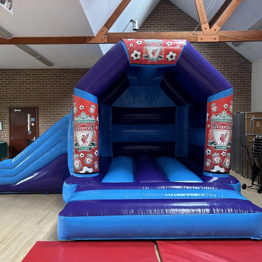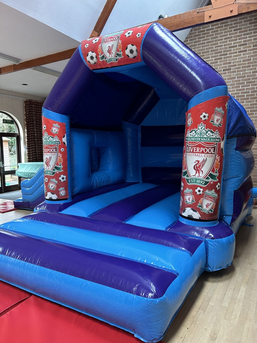 Are your children fans of one of the most famous football teams in the world and still wear the the shirts of Stevie Gerrard or Michael Owen then we can bring the whole Anfield Road experience to your very own venue with our amazing Liverpool football club bouncy castle available to hire in Chelmsford and all surrounding areas . Made in a high gloss material and covered in the legendary clubs iconic emblem this really will make any Liverpool fan's football party one to remember just light that epic night in Istanbul where the mighty reds beat Milan 3-2 on penalties to become European Champions once again . This stunning Liverpool bouncy castle also has a built in slide coming out from the side and a built in rain / sun cover to ensure your guests are kept entertained all day long . Want the match day to go on in to extra time or even a replay the following day then we can offer an overnight hire service and discounted rates for multi day hires both of which you can add on your booking forms . If you want a some other sports party ideas then we have many other sports inflatables such as
