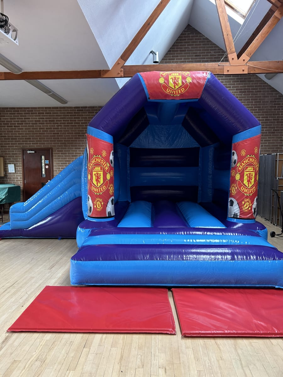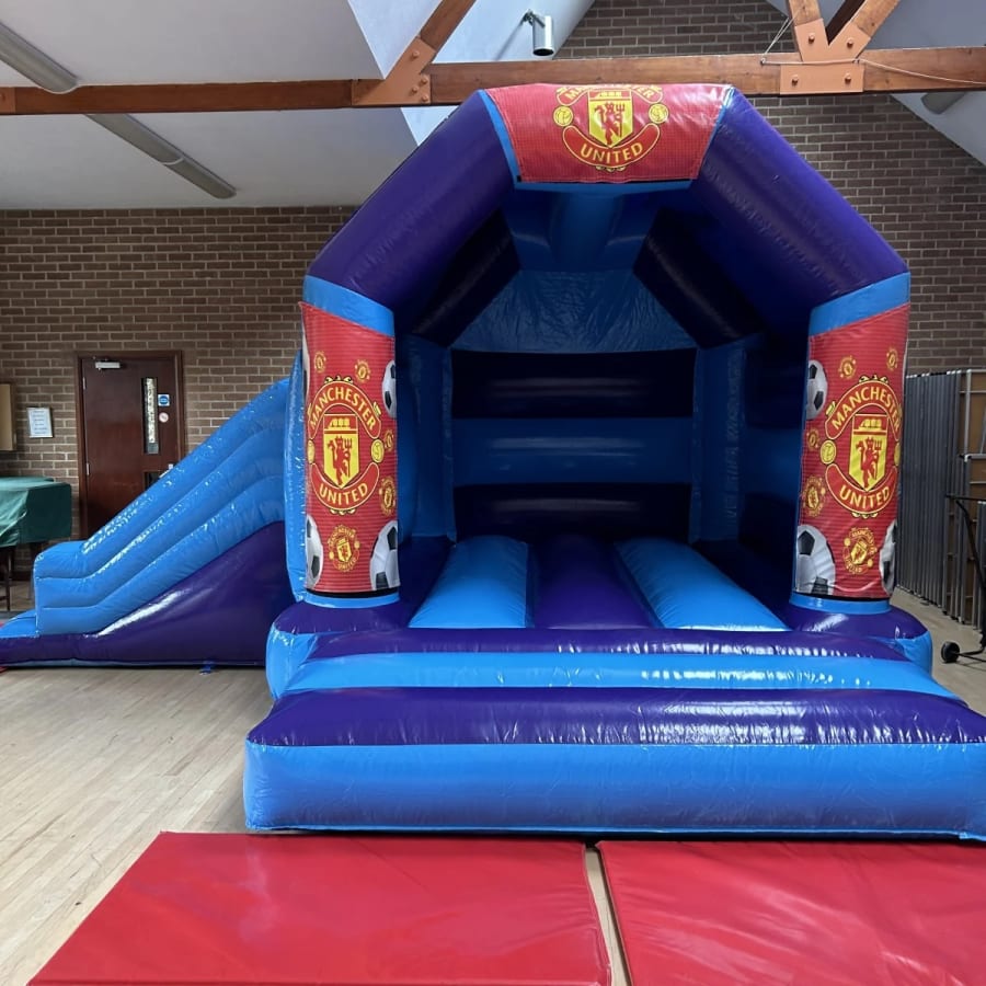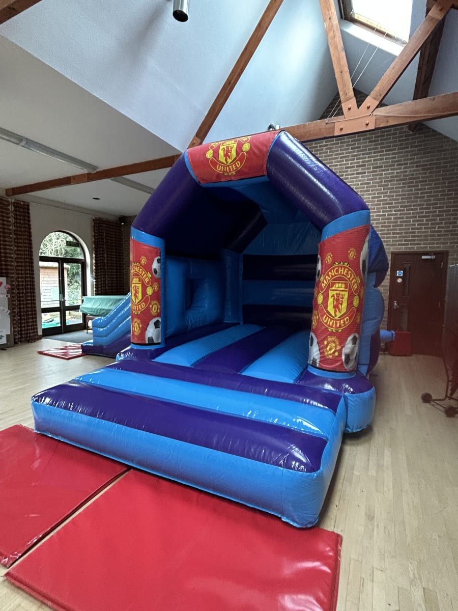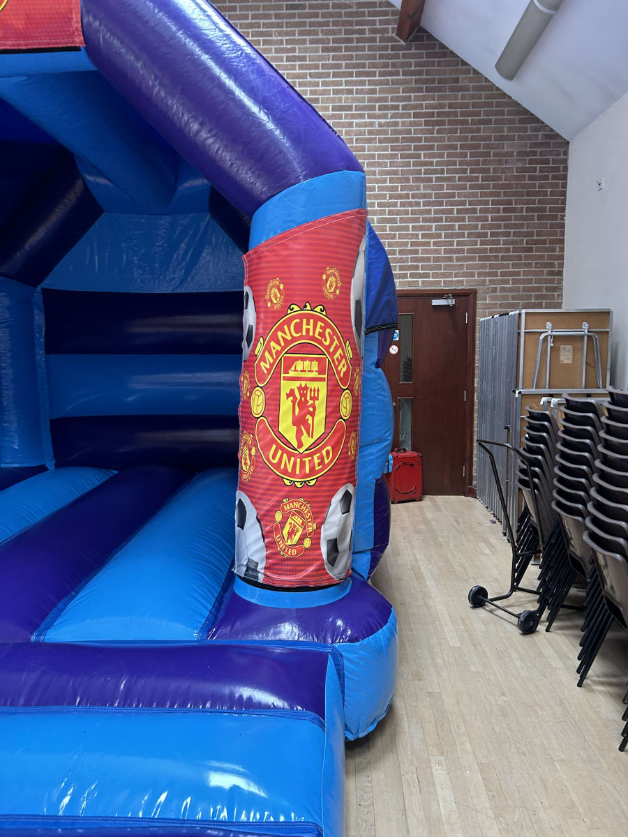 Bring the magic of old Trafford to your very own party or event with our amazing Manchester United themed bouncy castle available to hire in Chelmsford and all surrounding areas and let your children dream of being the next Ronaldo or David Beckham while they bounce the day away , made in a stunning high gloss material by one of the U.K.s leading inflatable manufactures and with bright and vibrant artwork of the world famous red devils this really will make any Manchester united fans party one to remember and with a built in slide coming out from the side you can ensure the fun will last all day long , if you wanted your party to go in to extra time then we can offer an overnight hire or discounted rates for multi day hires both of which you can book on your online booking forms . Want something for the younger guests then we have a fantastic range of