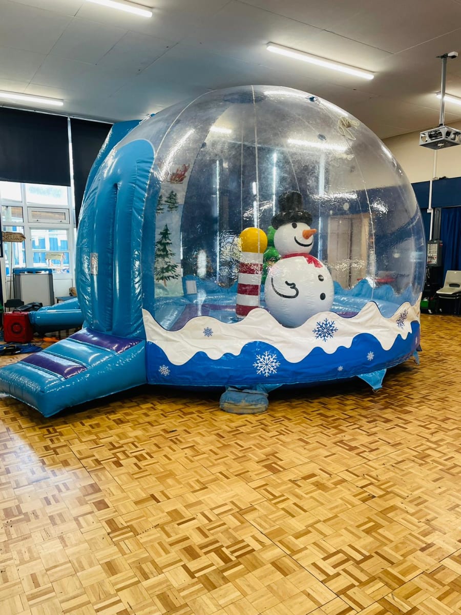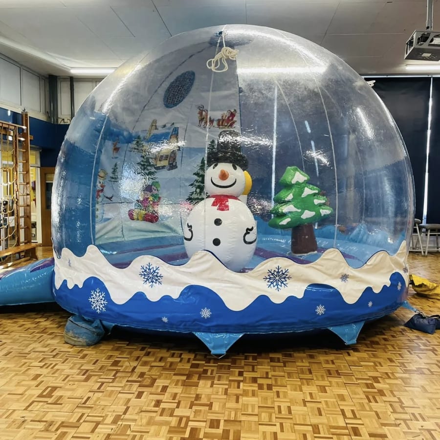Brand new in to our fleet is this amazing snow globe for hire in Essex, perfect for Christmas events climb inside the inflatable dome and bounce around the snowman , Christmas tree or yule log .This snow globe is a great opportunity to get that extra special photo shot of your family inside a life size snow globe, We also have many other extras available that would go perfect along side our snow globe such as carnival games , Christmas themed bouncy castles to hire and even popcorn and candy floss. 1st2bounce are currently one of only a hand full of companies to offer snow globe hire in Essex and across the U.K.