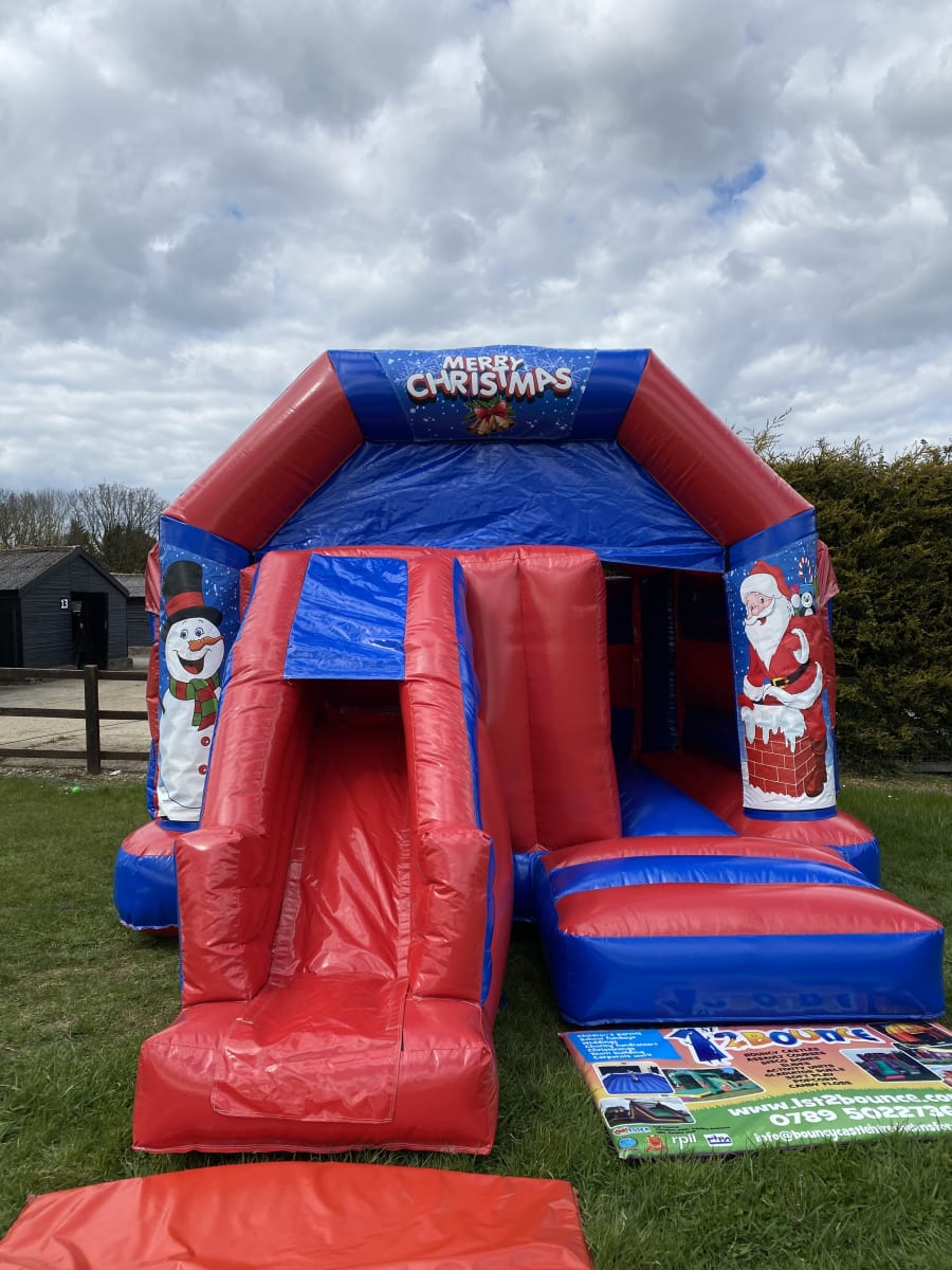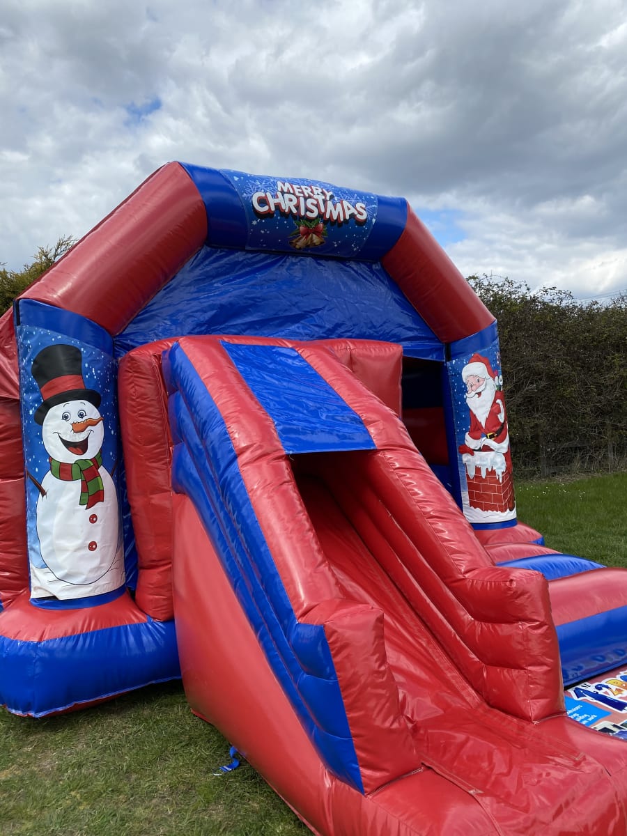 Why not celebrate the most magical time of the year with our magical Christmas themed slide combo bouncy castle with frosty the snowman and the main man himself Santa claus . With bright and vibrant artwork on a stunning high gloss castle this is the real stand out inflatable for any christmas party or event . similar to a normal bouncy castle but with the added slide coming out of the front this really will keep your little elves amused all day long . We have a large selection of Christmas themed items all can be found on our